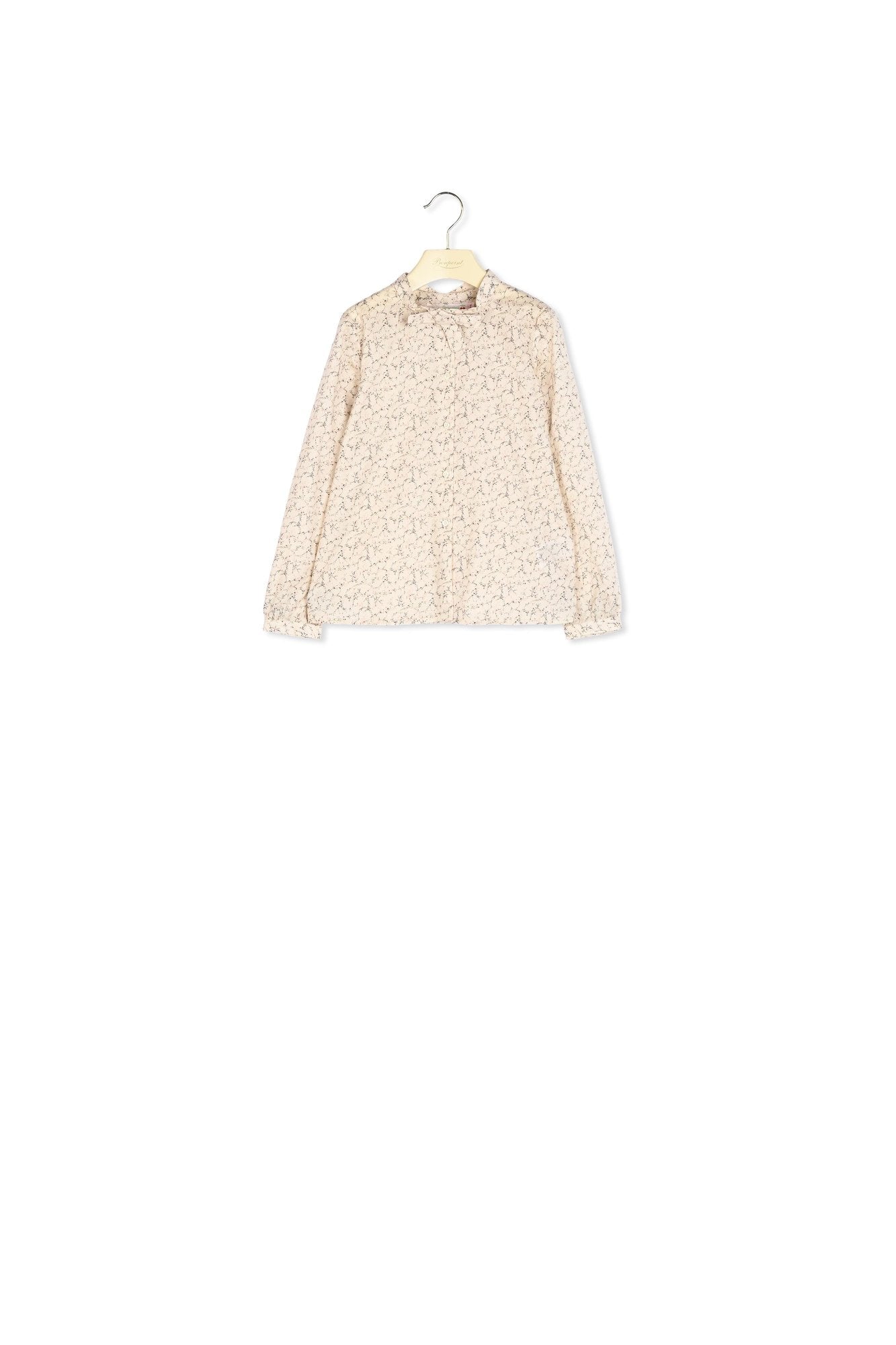 The Modesty girls' shirt is made of GOTS-certified organic cotton material. The elegant Liberty fabric design features a removable bow at the neckline.