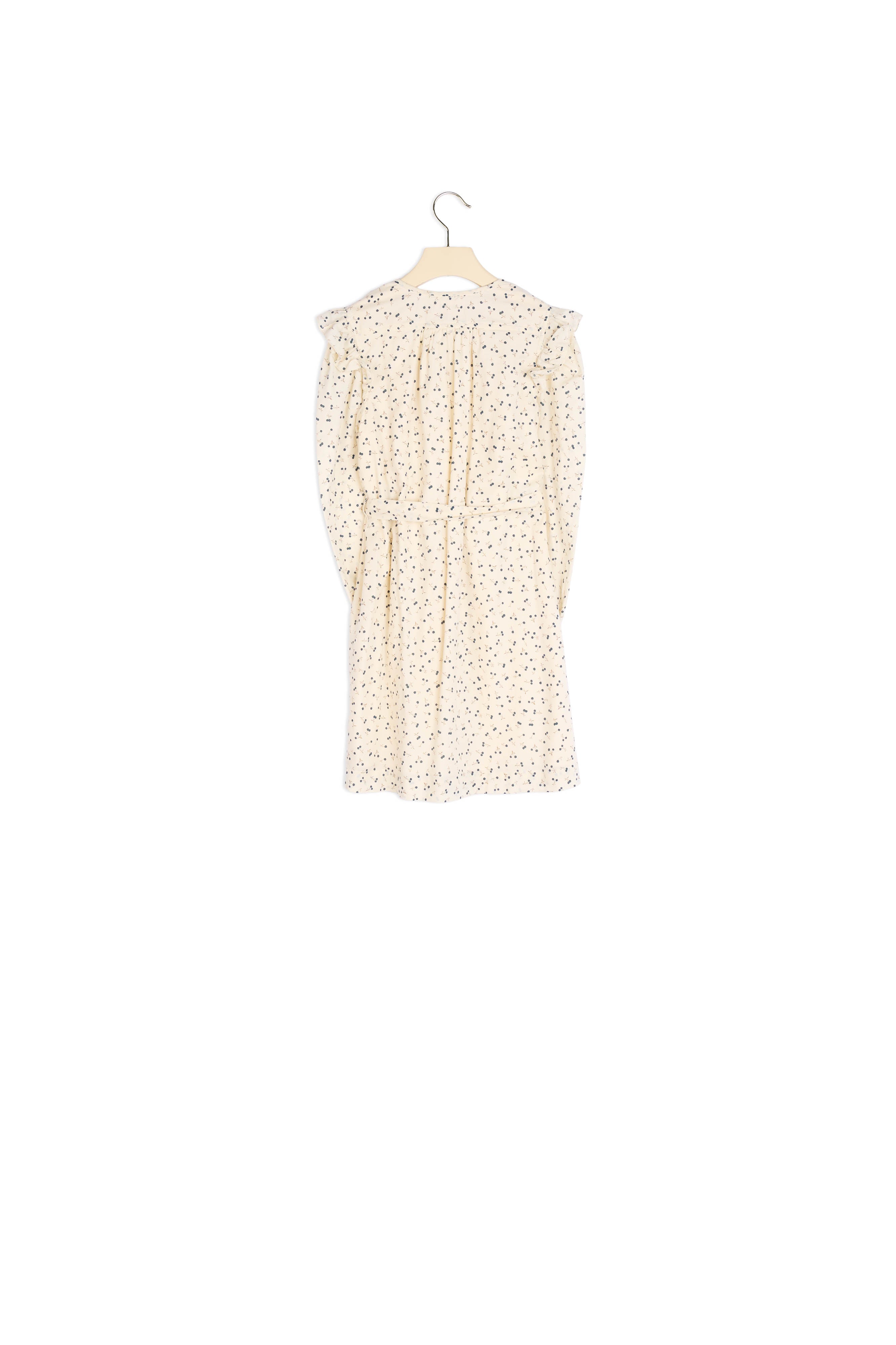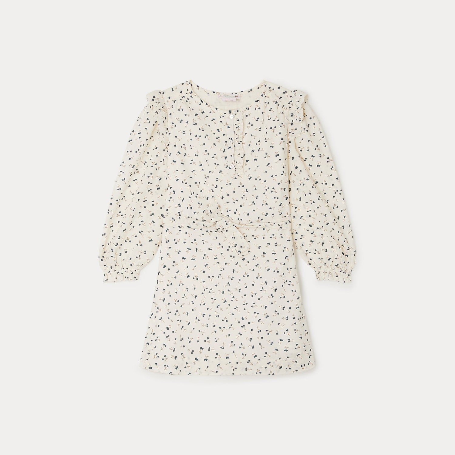 The Tosca dress for girls, featuring Bonpoint's iconic cherry print and ample ruffled detailing, stands out. Ornamented by a crew neck and puff sleeves, the dress also features a tie belt. Double cotton twill. Straight cut. Buttons on the front.