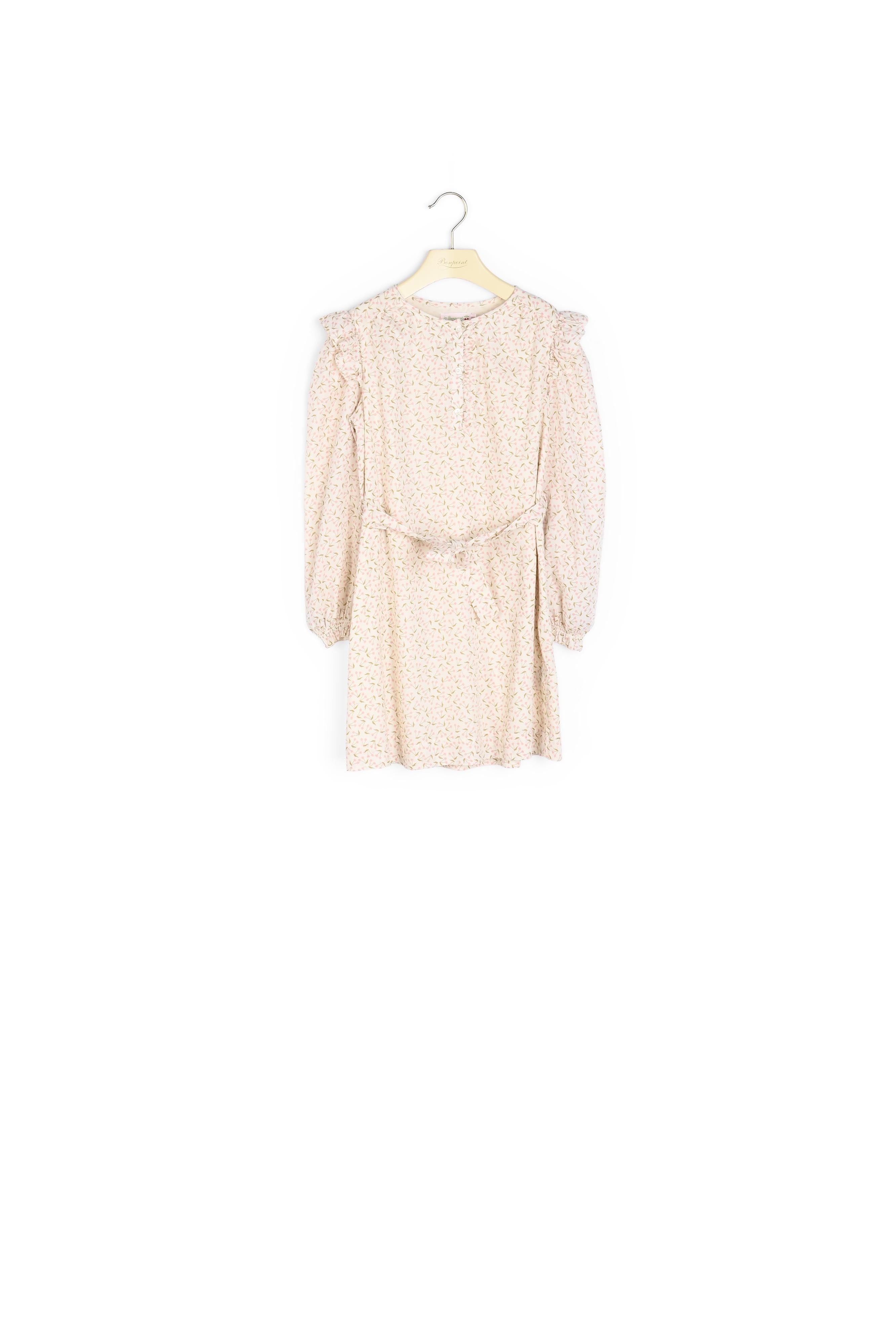 The Tosca dress for girls is made from lined cotton and combines comfort with the volume of a flared cut and fitted waist. This garment is enhanced by long puff sleeves with little ruffles and the iconic cherry print. Crew neck. Fastens at the front with buttons.