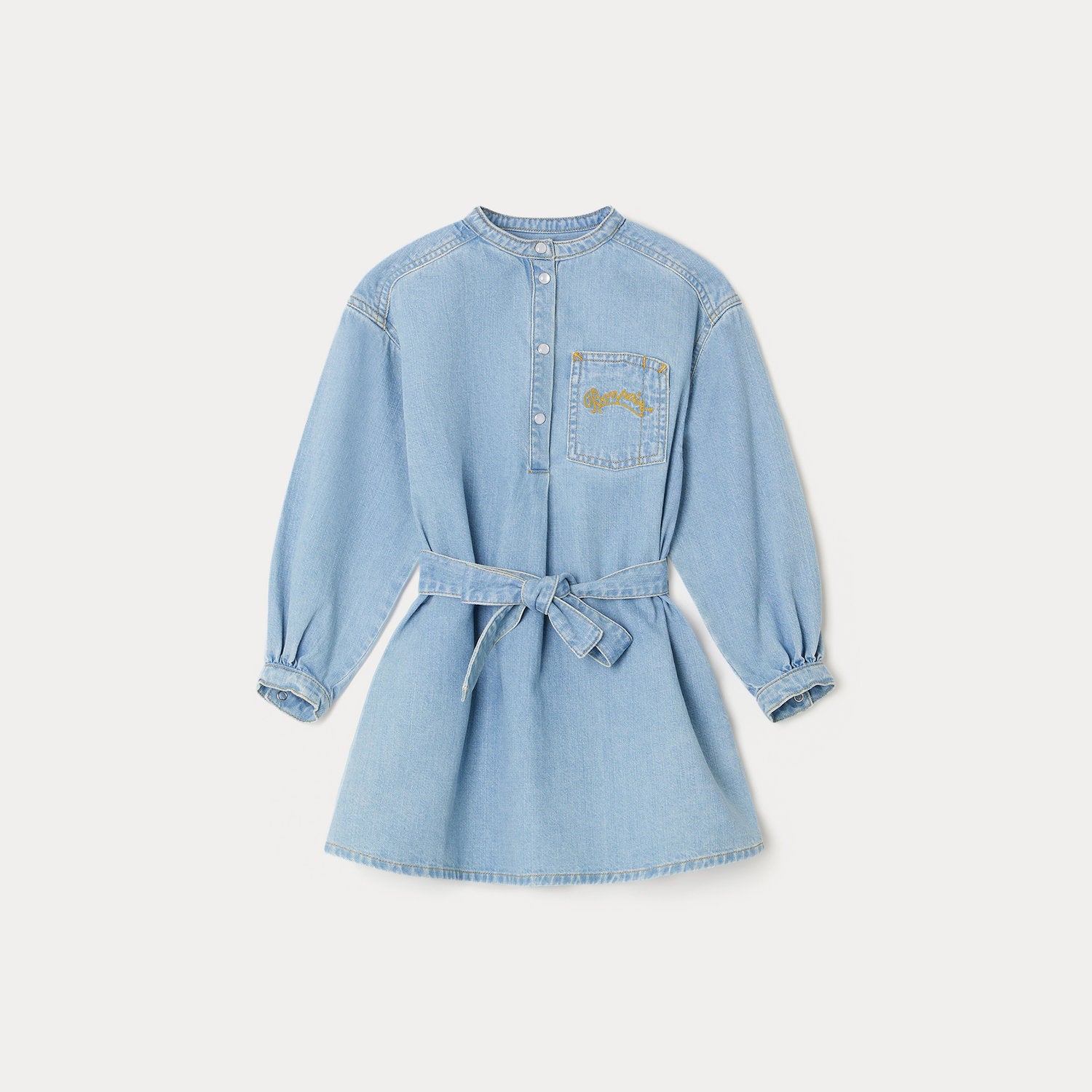 This light denim wash Beloved dress for girls is made from certified organic cotton. It features long puffy sleeves and a cursive Bonpoint signature that adorns the front chest pocket. Certified organic cotton. Tie belt. Mandarin collar and snap-button fastening.
