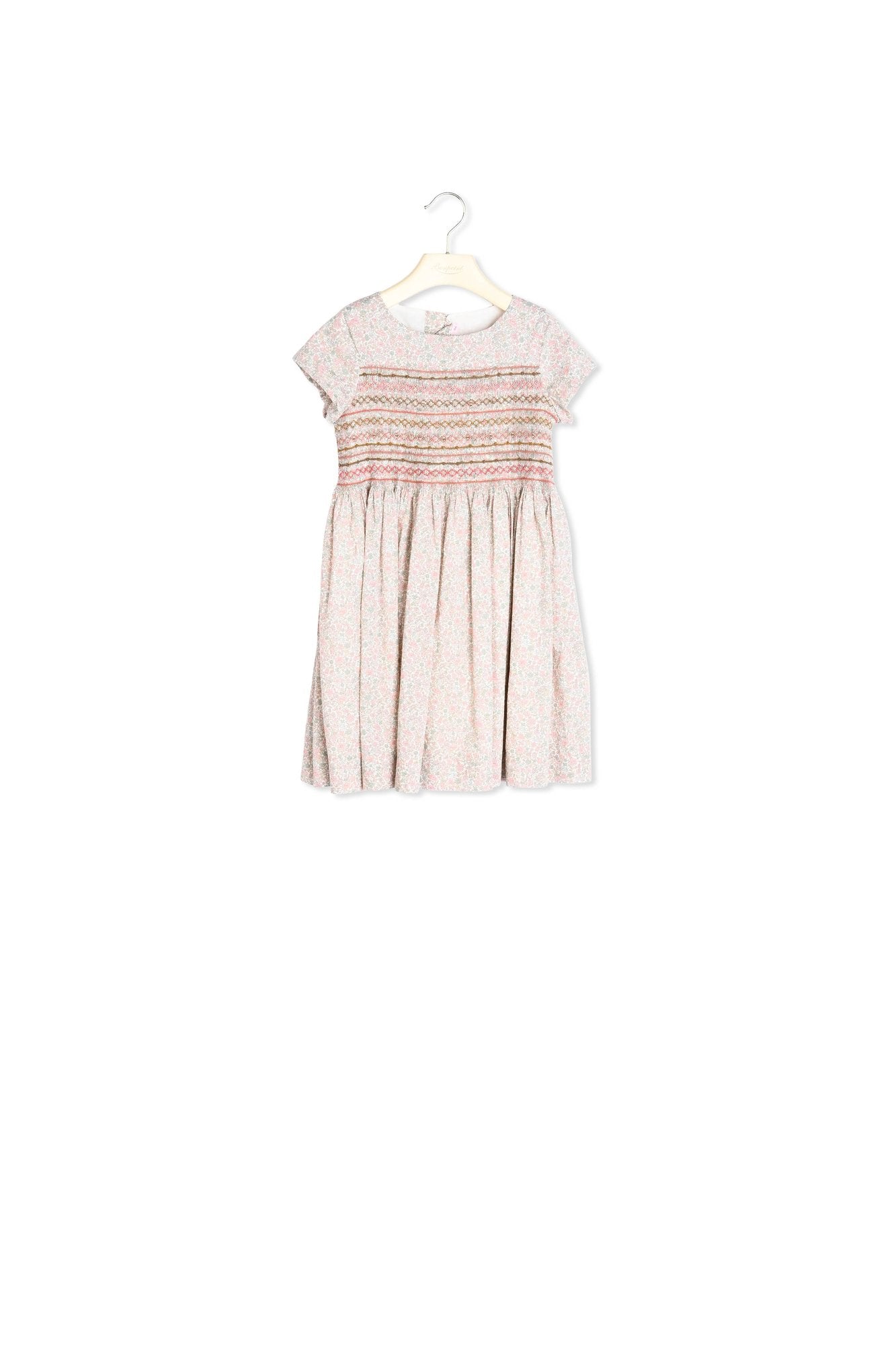 A House must-have, this Duchesse dress for girls features hand-embroidered smocking in the front and delicate gathering at the waist. Its Liberty fabric gives it a fresh look. Flared cut. Back button fastening.