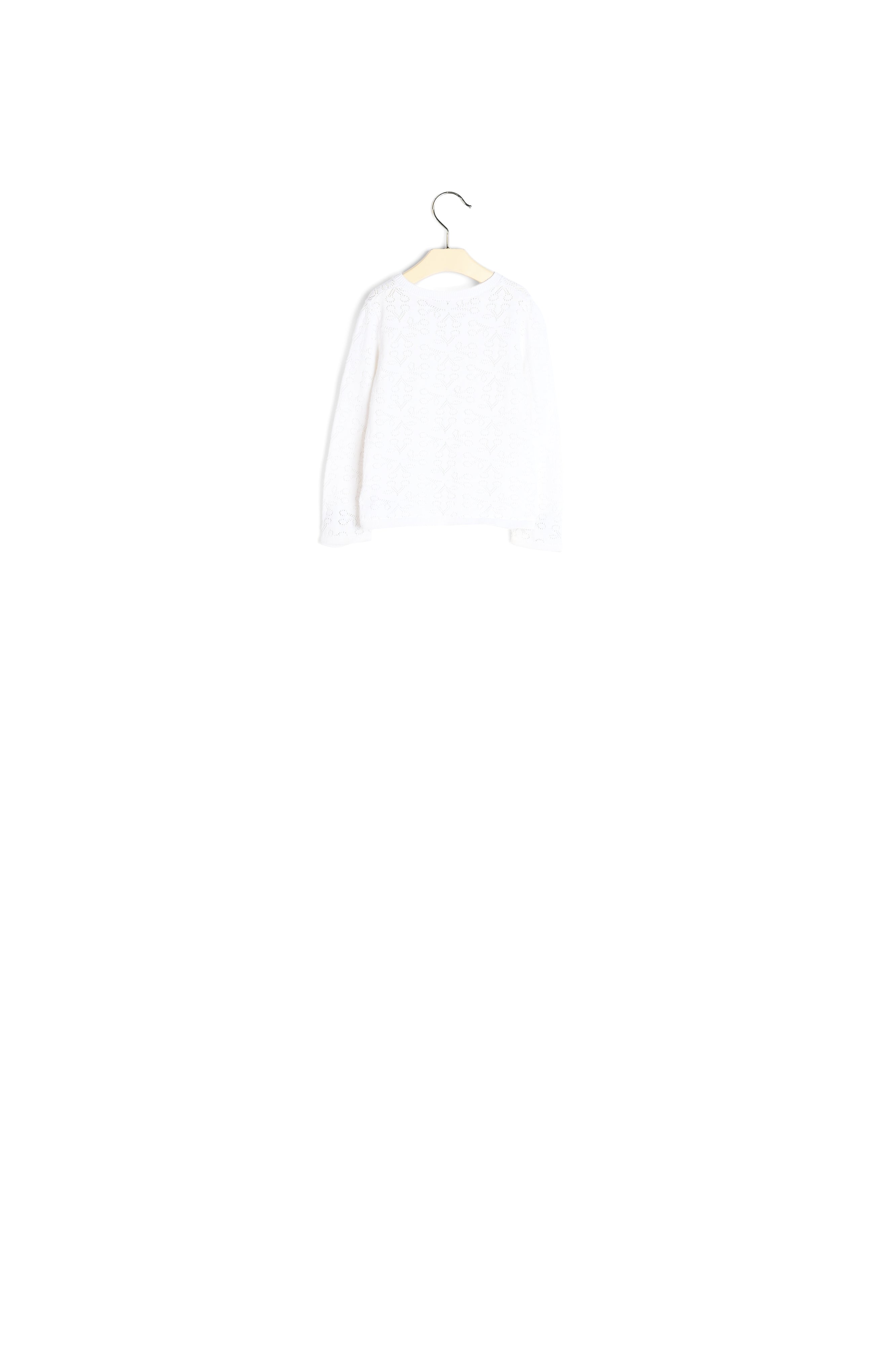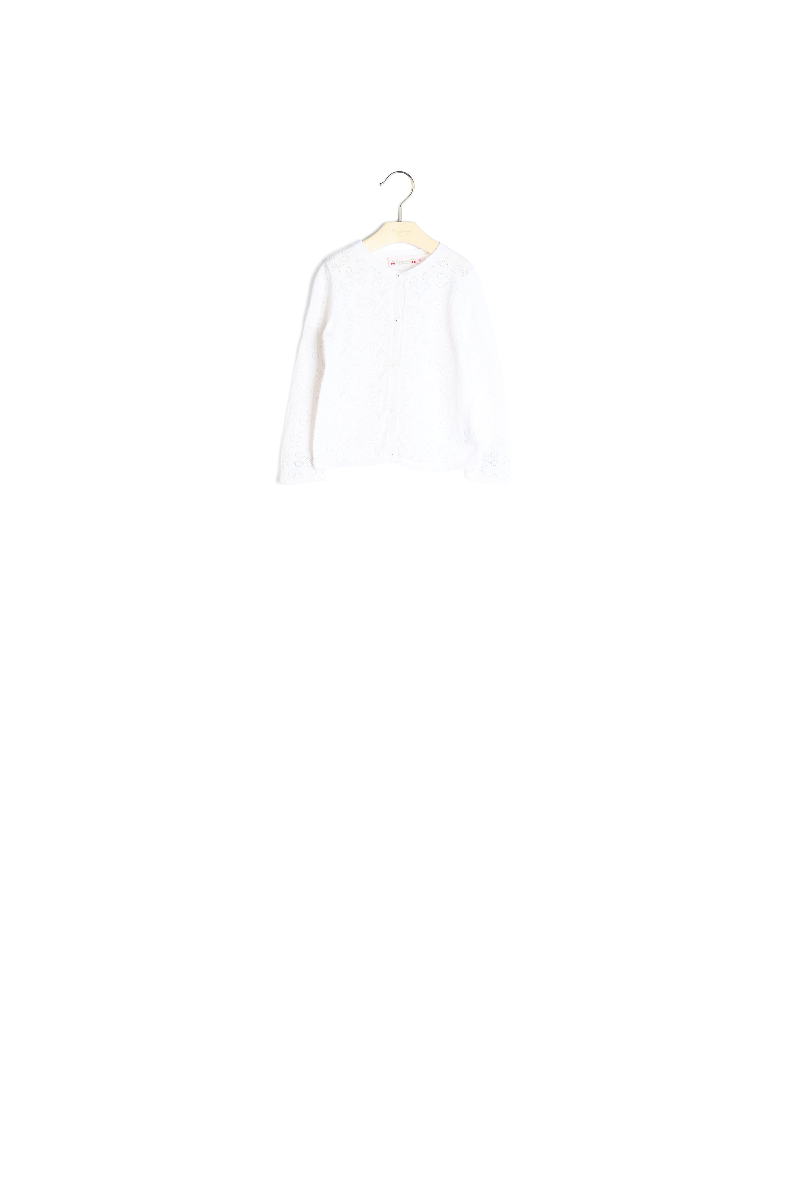 The Clayel cardigan for babies features an eye-catching openwork pattern depicting the iconic Bonpoint cherries. This solid-colored organic cotton design has ribbed detailing for added comfort and sophistication.  Certified organic cotton. Long sleeves. Front button fastening.