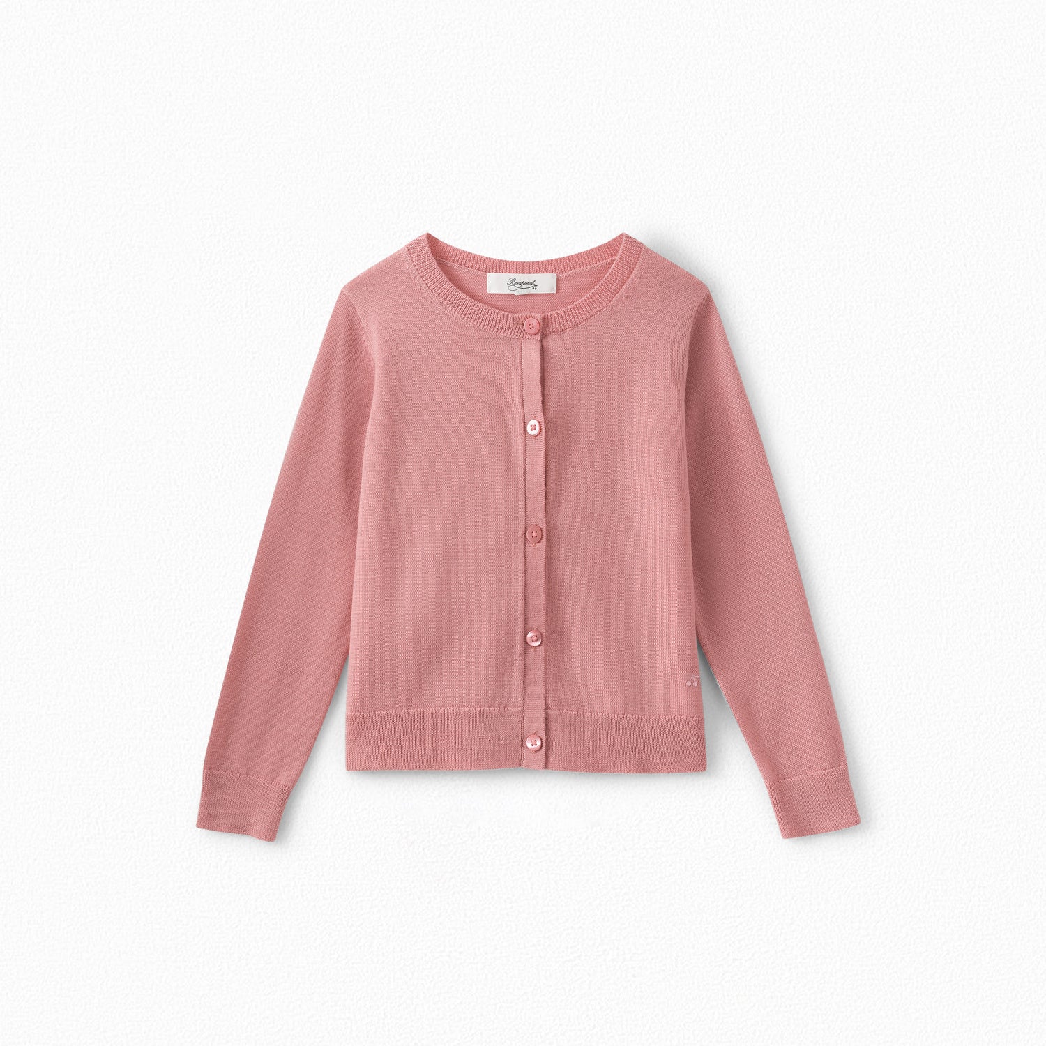 This girls' merino wool cardigan, an iconic House design, is knitted from merino wool that won't shrink in the wash. Embroidered Bonpoint cherries at the hem embellish the simple design.