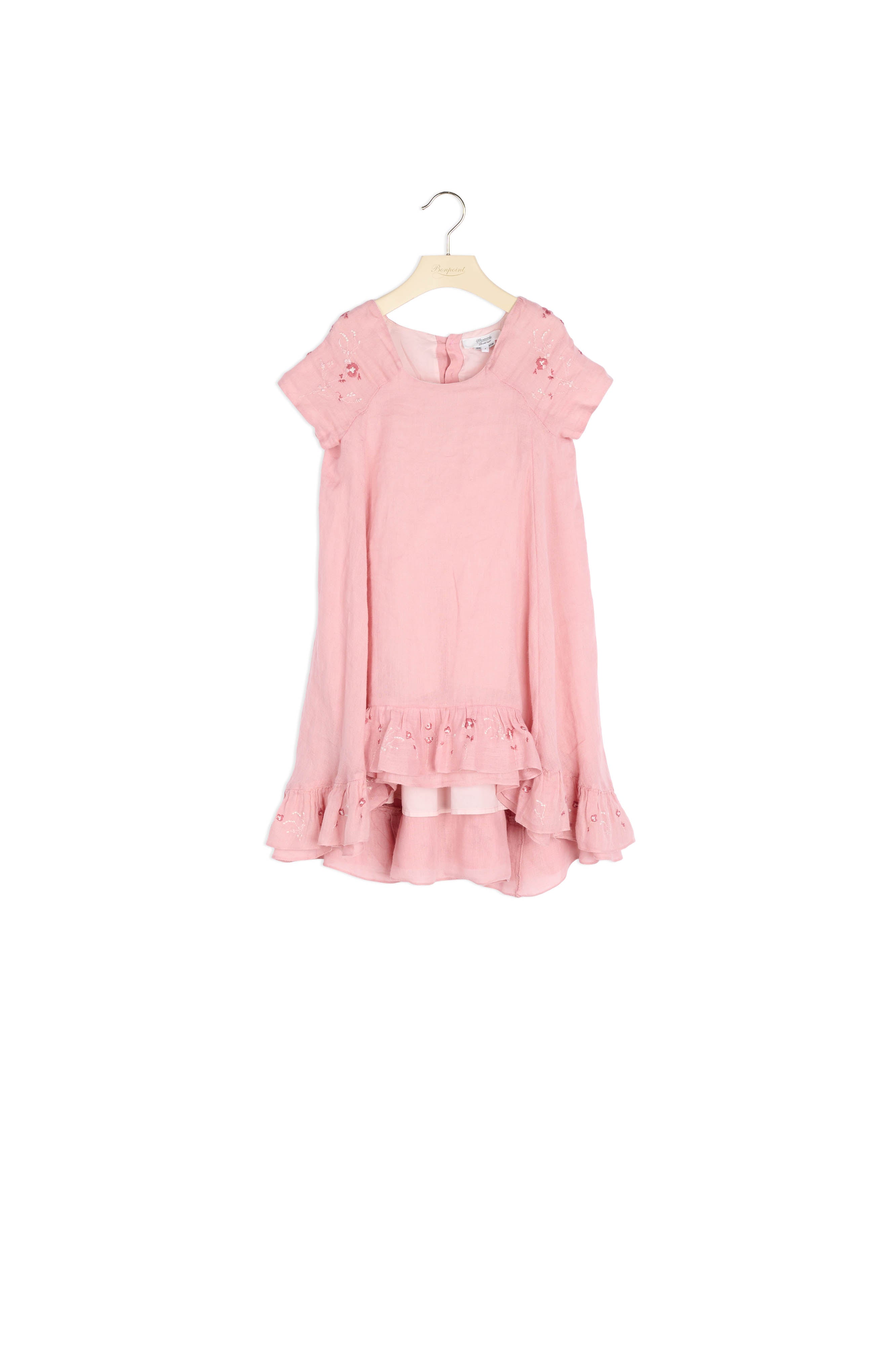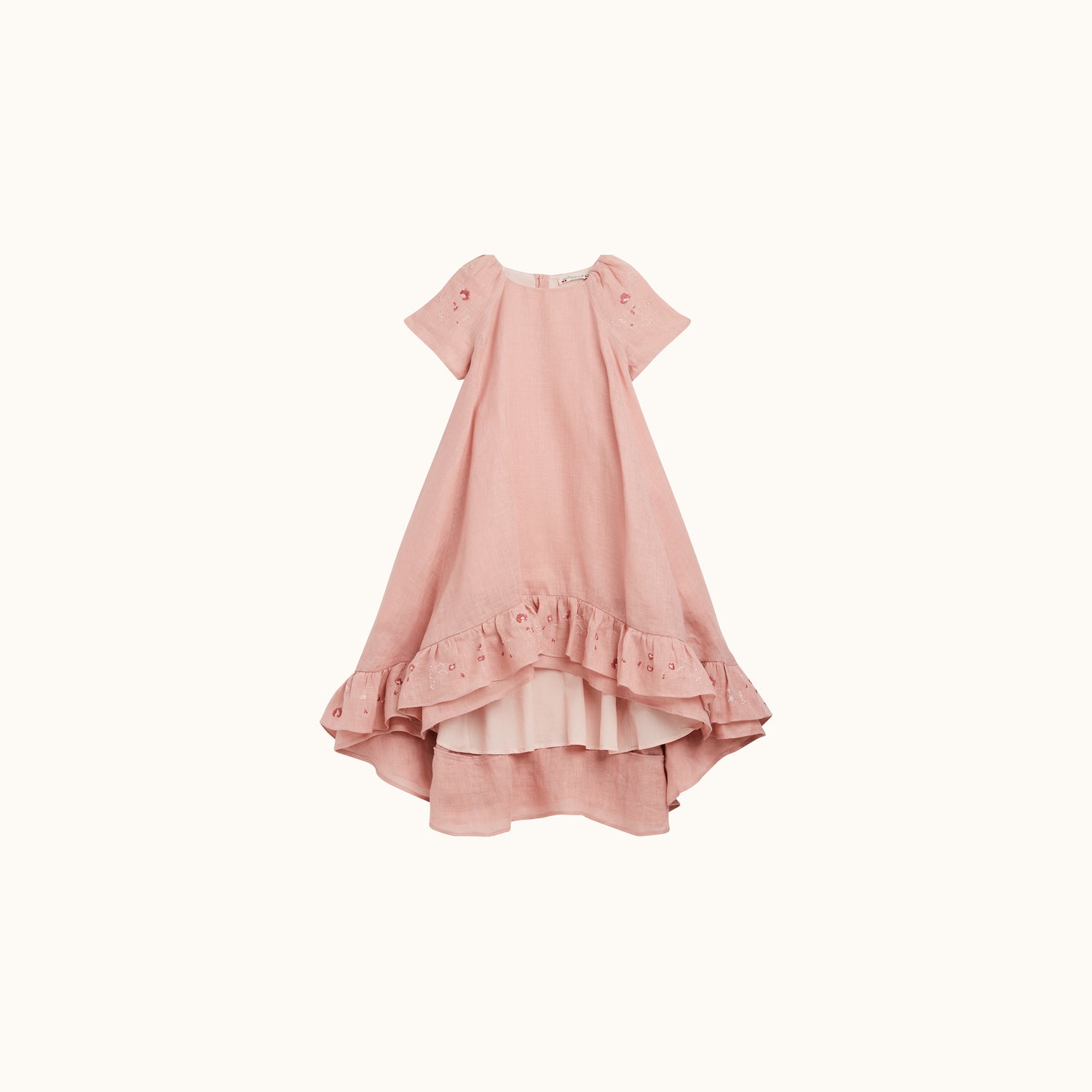 This linen gauze Nola dress is the princess dress every child dreams of. We love the lightness brought to this piece by the multiple ruffles on the skirt and the delicate flowers embroidered on the sleeves.