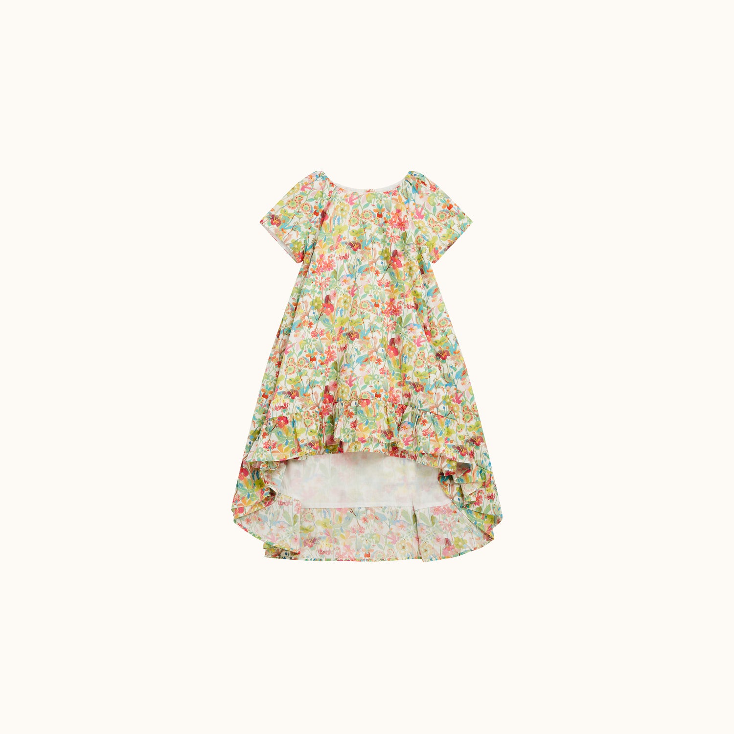 This long Liberty print Nola dress features a colorful print and an asymmetric ruffled hem. Lightweight and comfortable to wear, it is made from cotton. Wear it with a pretty pair of leather sandals.