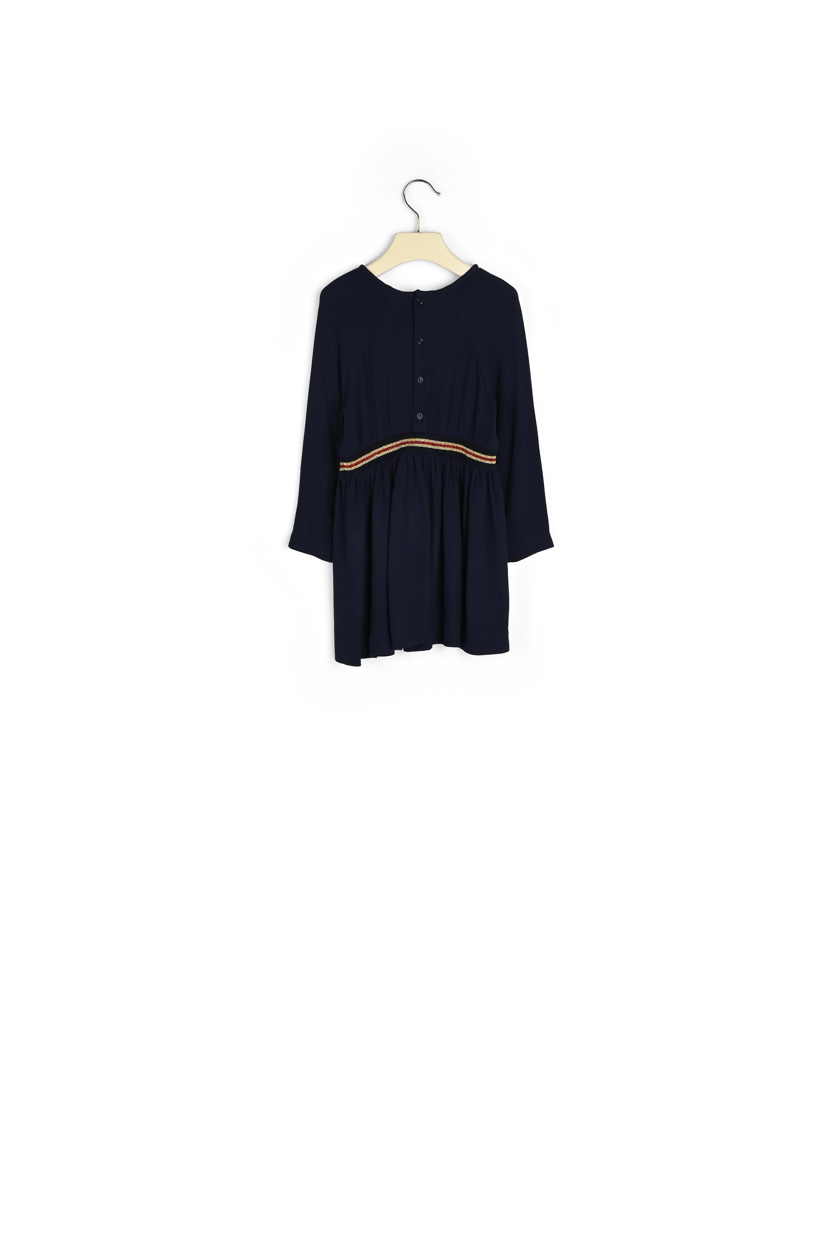 Viscose crepe dress with fancy ribbed edging on the waist. Winter 2018 Girls’ Collection.