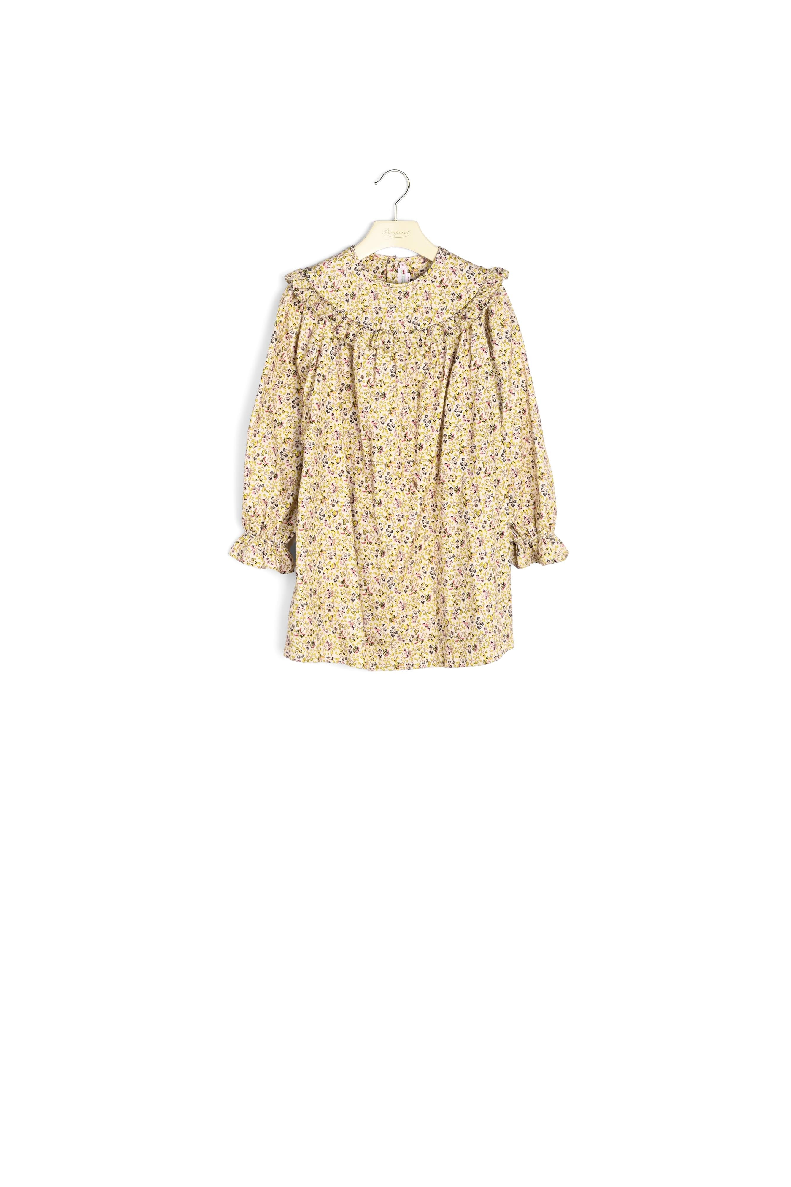 The Bevika dress for girls takes center stage with its flounced shirtfront, floral print and lovely volume. The long sleeves have ruffles at the wrists. Cotton twill. Button fastening at back. Sheer cotton lining.