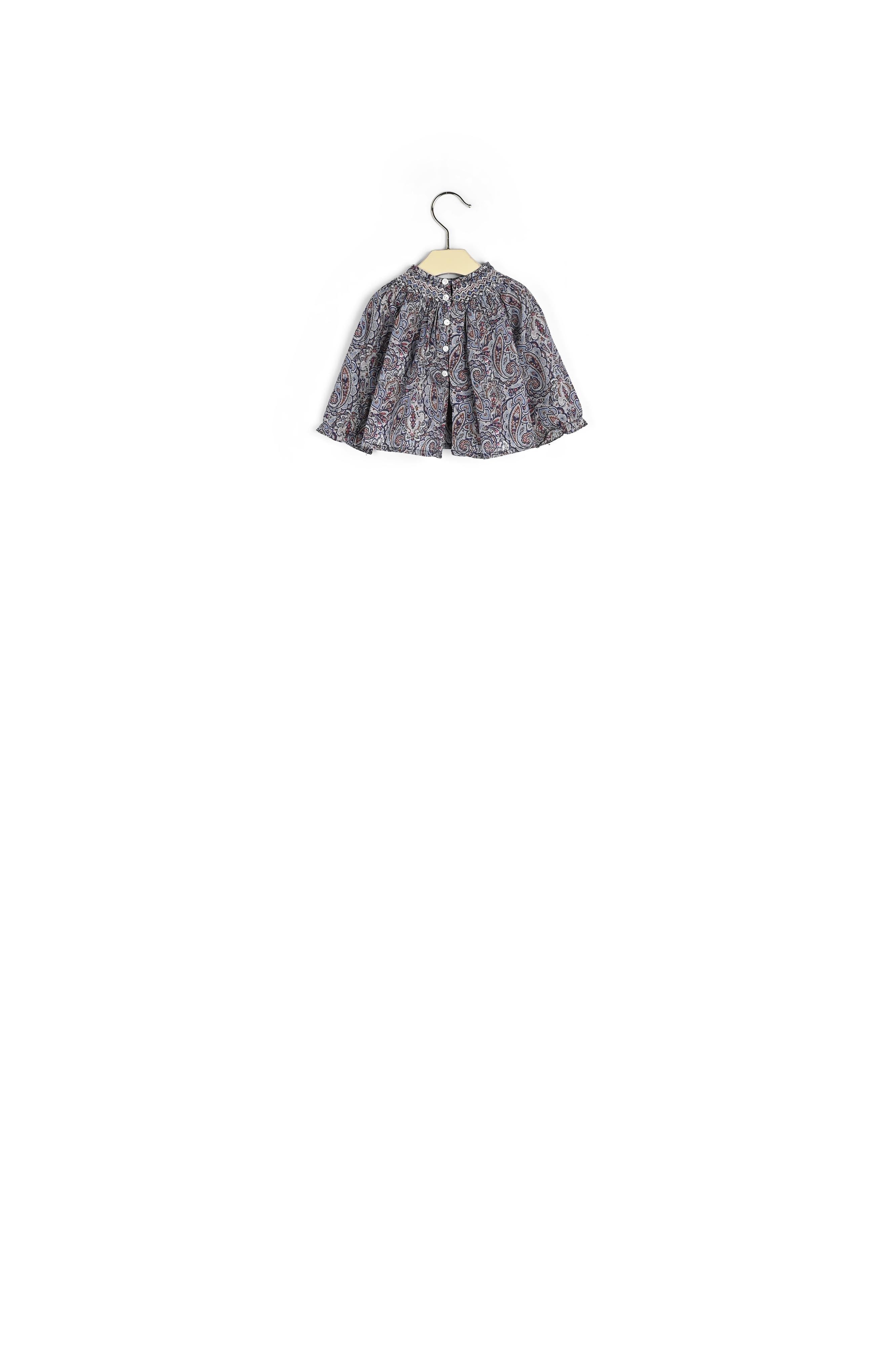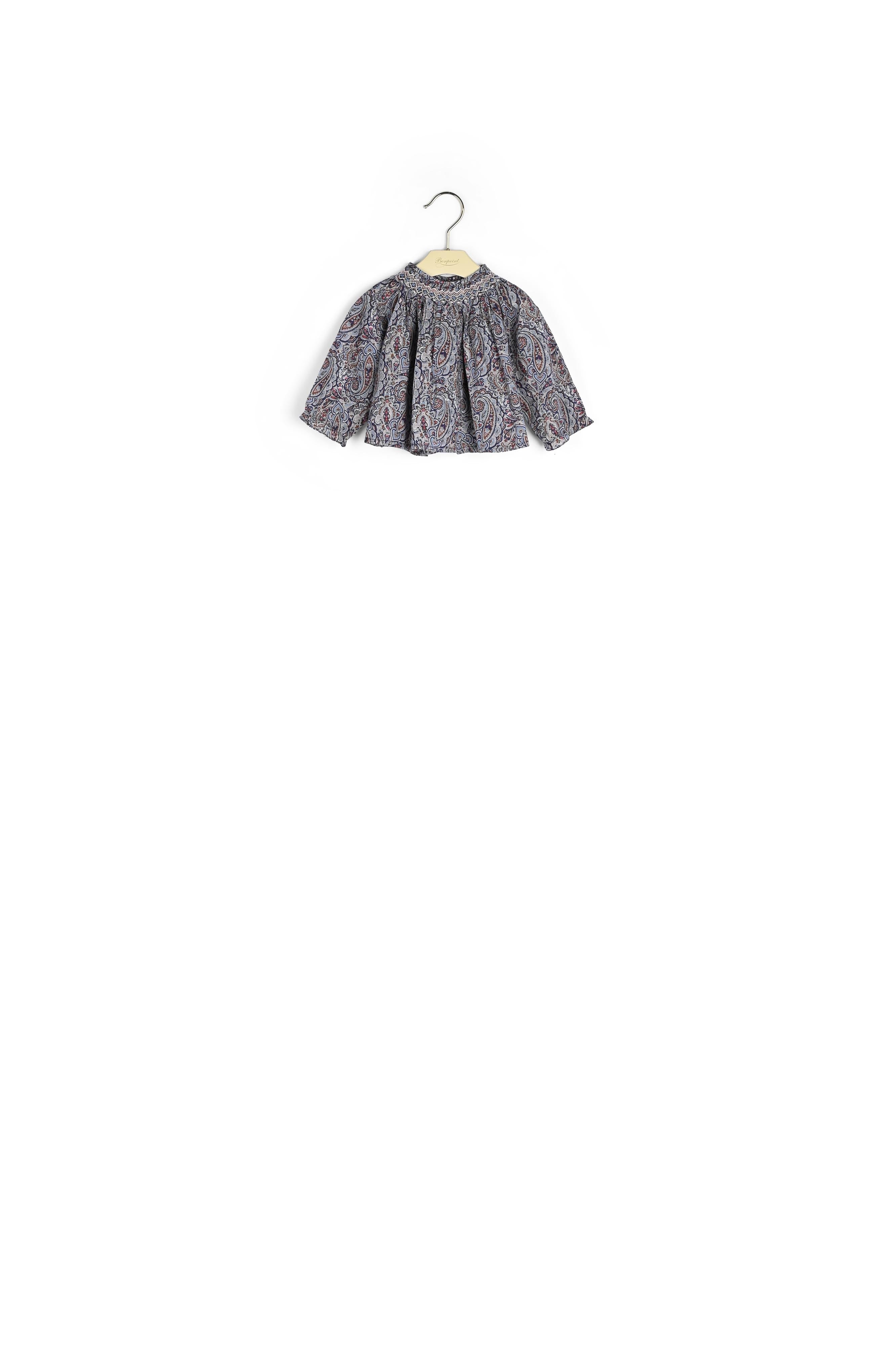 The timeless Liberty motif returns to the babies' clothing collection, in the shape of this pretty Griotte babies' blouse with a smocked effect and a colorful print. It will go perfectly with velvet pants like the Dandy model.