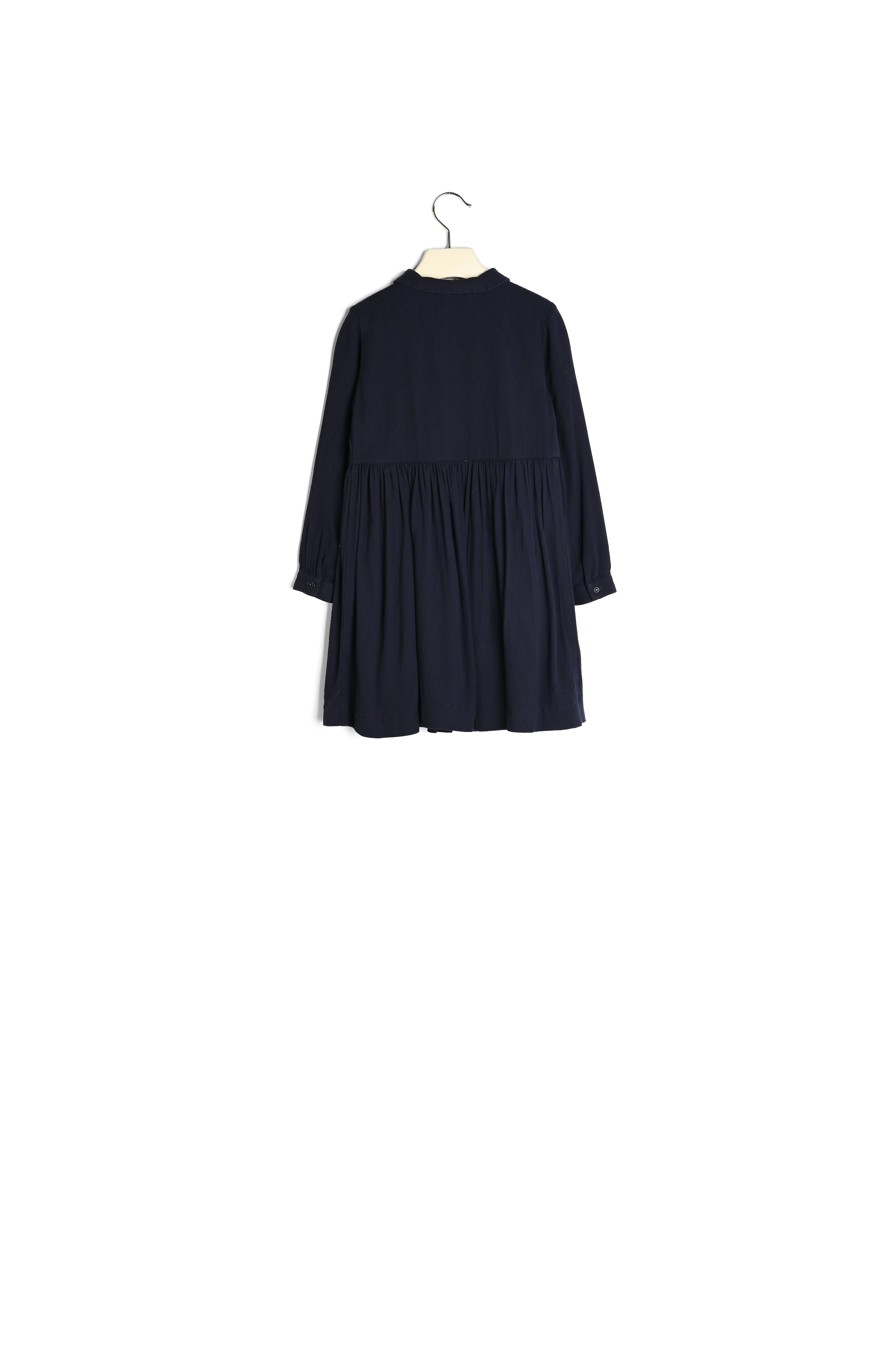 The Fantine dress for girls is very comfortable to wear, thanks to its high waist and loose fit. A tone-on-tone embroidered  Bonpoint cherry logo at the bust adds a subtle touch. Contains virgin wool. Button fastening at the bust. Shirt collar.
