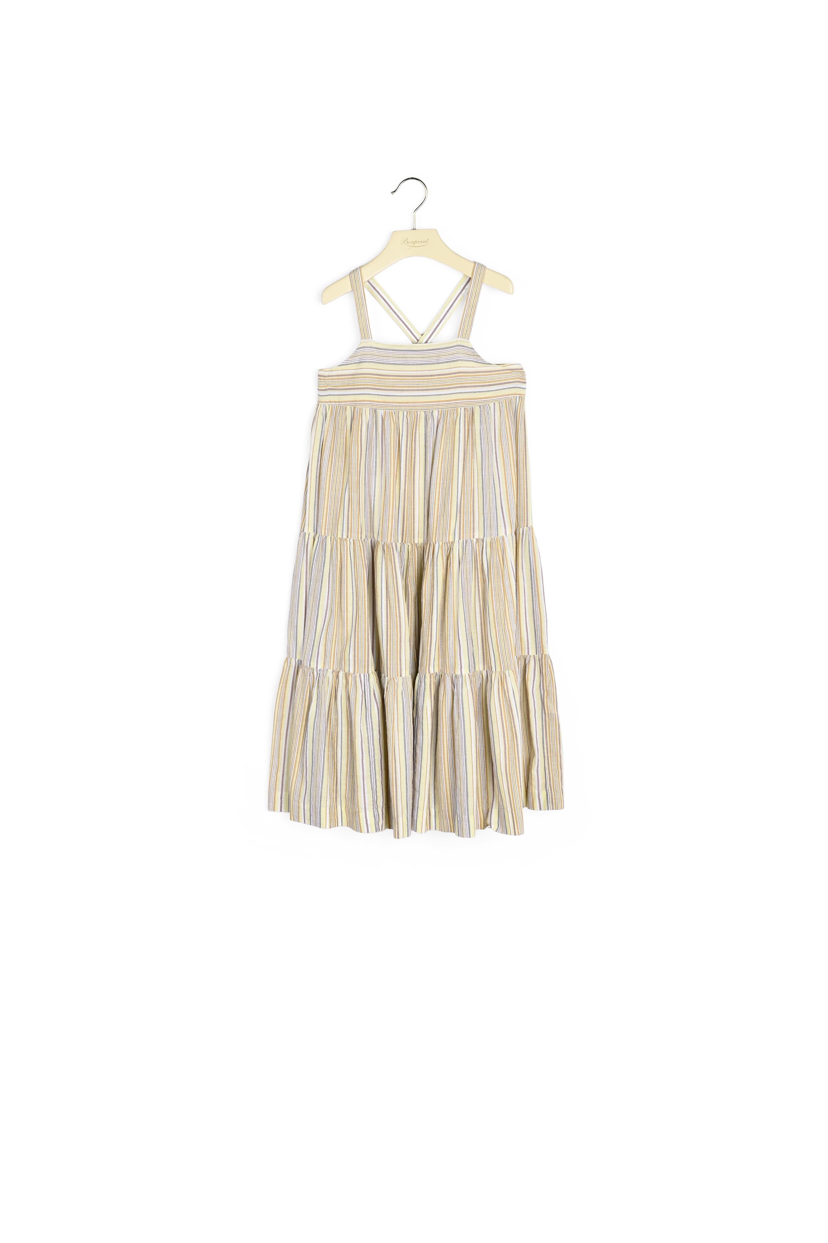 Girls will love this long Cora dress with its flared cut and layered ruffles. It's made from certified organic cotton and features thin straps that are adjustable at the back with buttons. Organic cotton. Two-button fastening at the back. Striped pattern.