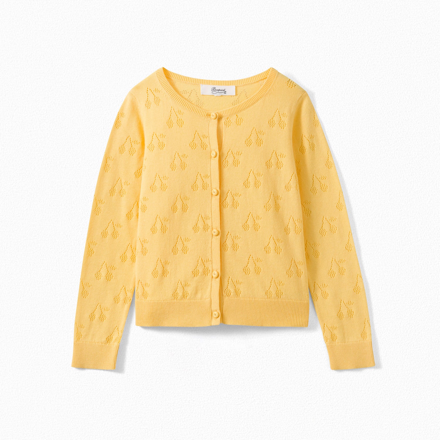 This girls' cardigan is one of the Bonpoint House's most timeless designs. The Bonpoint cherry logo appears all over the surface of the openwork knit. The lightweight cotton design is perfect for mid-season wear.