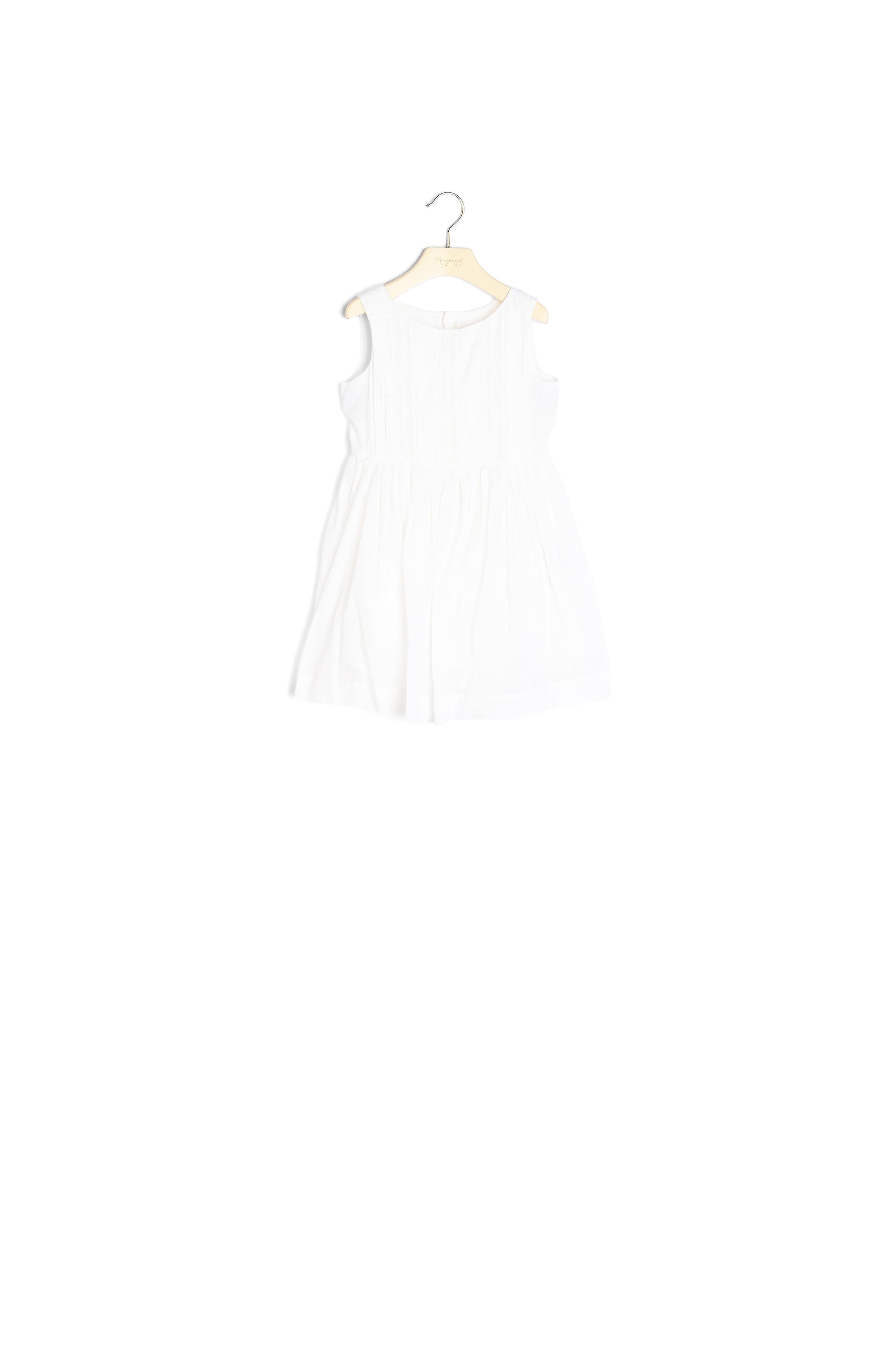 The Alina girls' dress is made from cotton voile and has a charming allure with its pure white color and delicate embroidery. Made in a sleeveless design, it fastens with buttons at the back. Wear with a pretty pair of floral sandals.