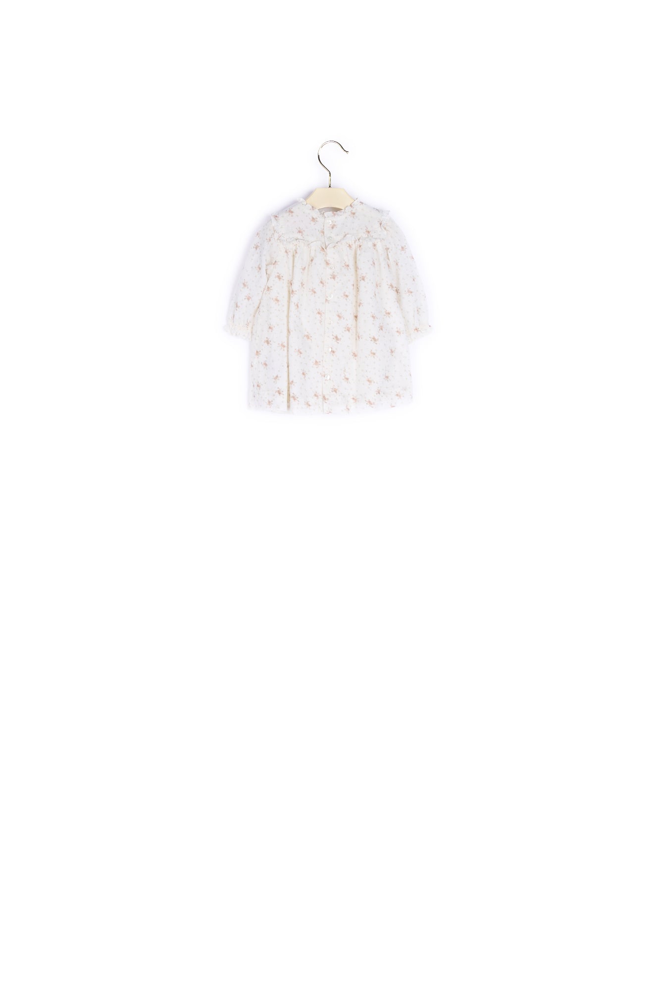 The delicate floral print and ruffles of this Teiki baby dress give it a romantic look. It fastens with pearly buttons on the back.