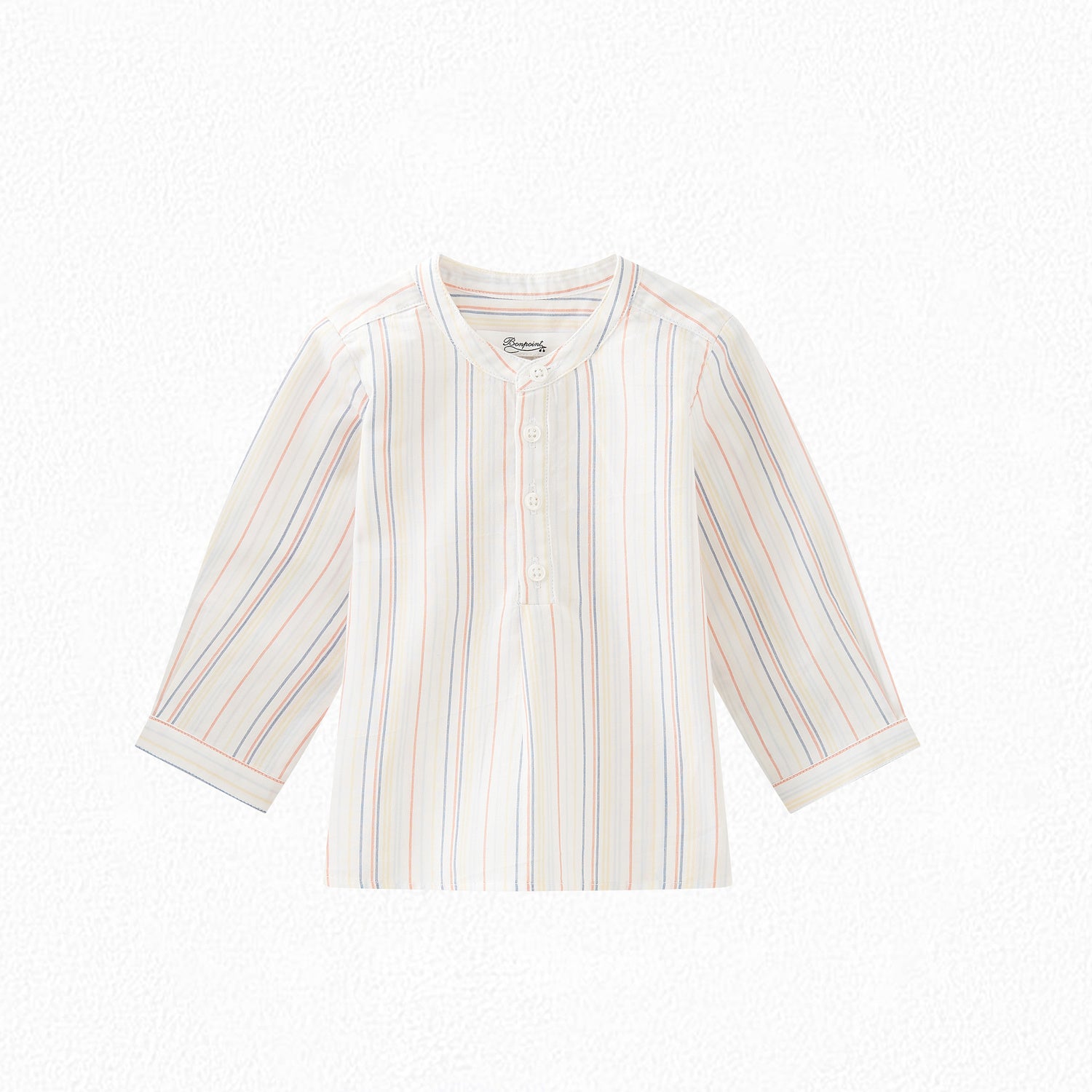 This organic cotton poplin Polisson tunic for boys features a timeless striped pattern. Its buttoned collar adds an elegant touch.