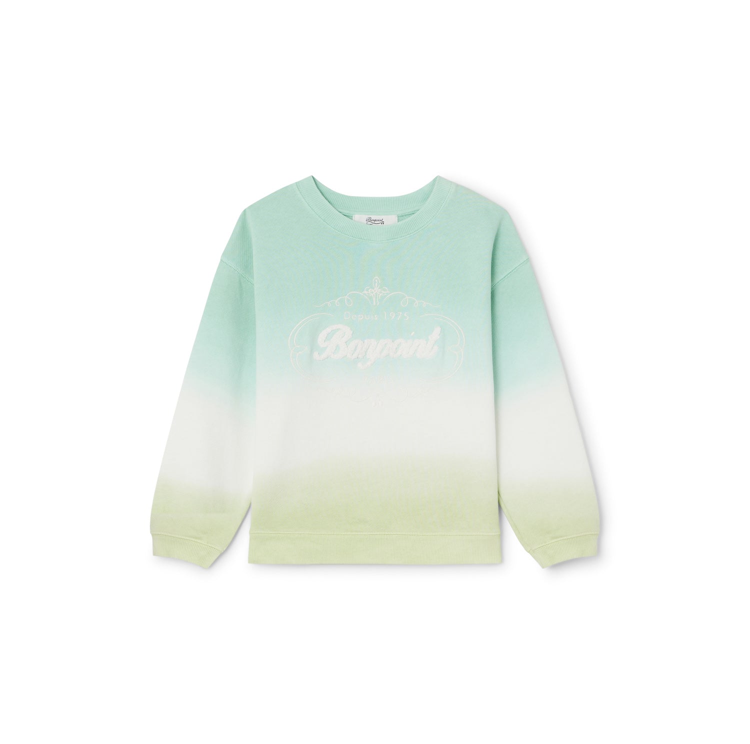 Le sweatshirt Tonino pour garçon se démarque par son dégradé de couleurs façon tie-dye. Le blason Bonpoint s'invite en bouclette contrastante devant.