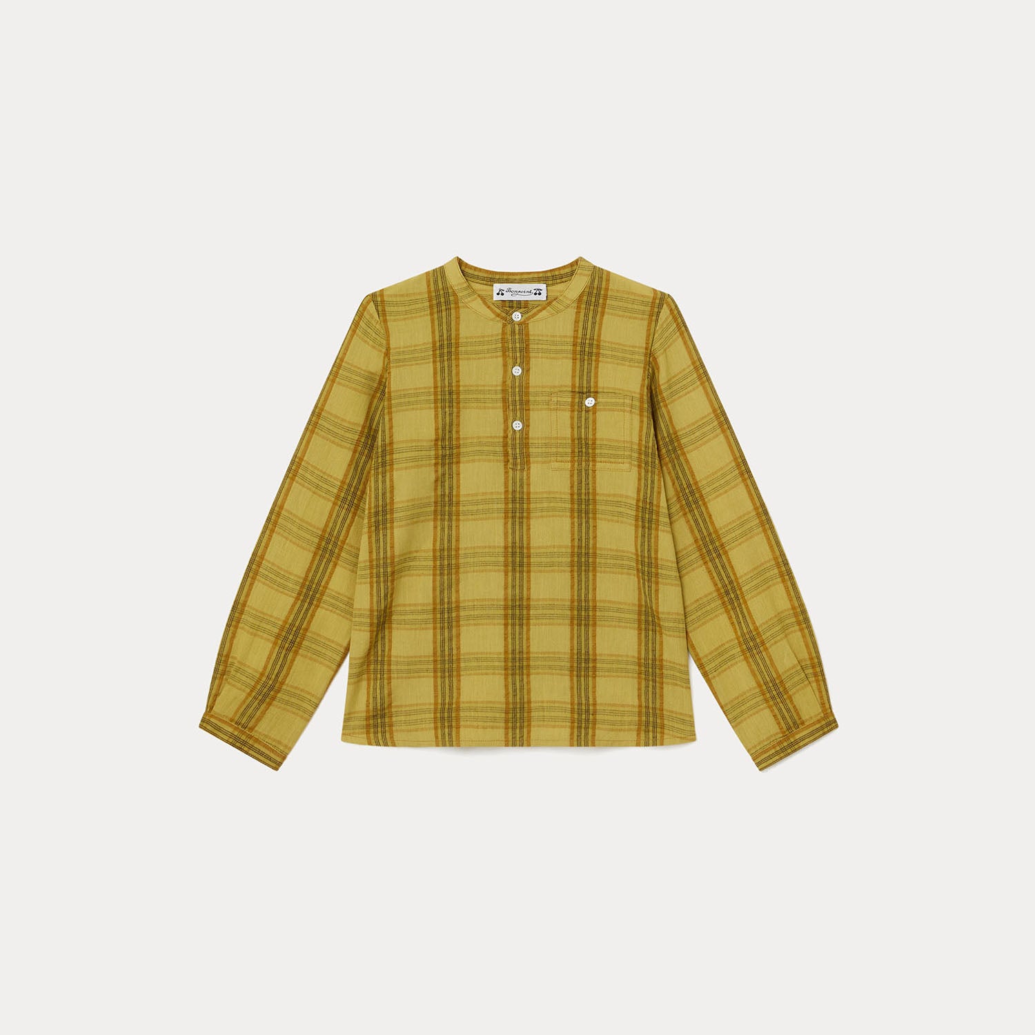 La chemise Artiste pour garçon est un intemporel de la Maison. Sa coupe droite s'assortit d'un col tunisien aux boutons nacrés contrastants.