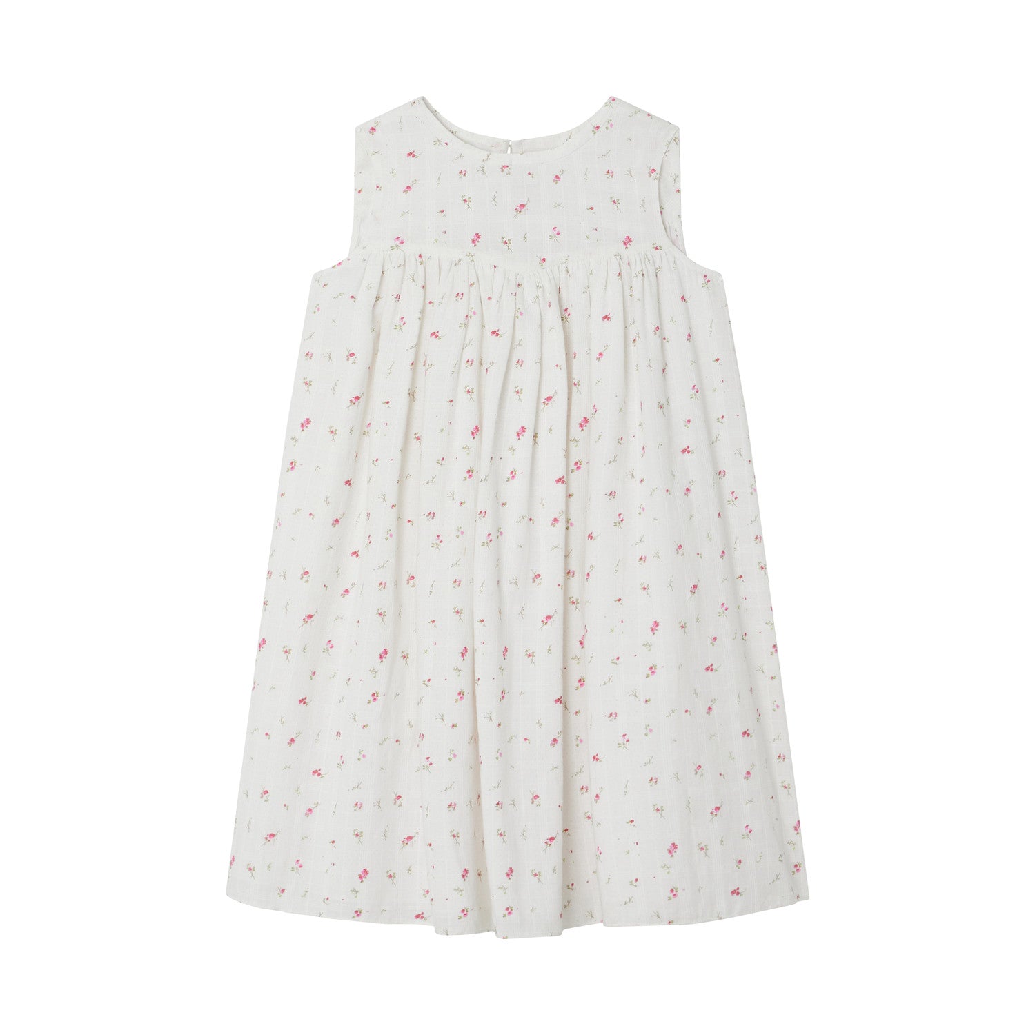 La robe Angèle pour fille se démarque par son imprimé fleuri aux détails subtils. Des fronces sous le buste confèrent du mouvement à sa coupe.