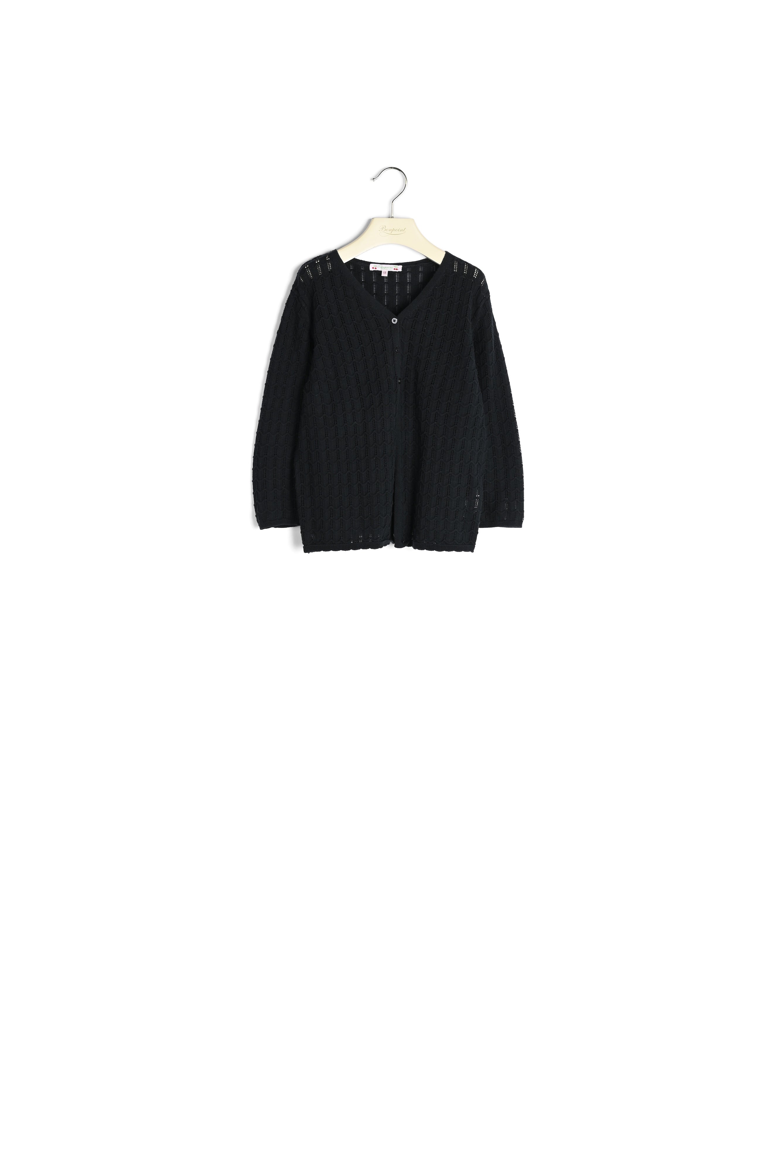 Ce cardigan en coton pour fille réinterprète le modèle classique dans une version romantique et contemporaine. Les finitions vagues résonnent avec la maille ajourée pour apporter mouvement et allure au vêtement. On l'associe à une robe de cérémonie et à des salomés.