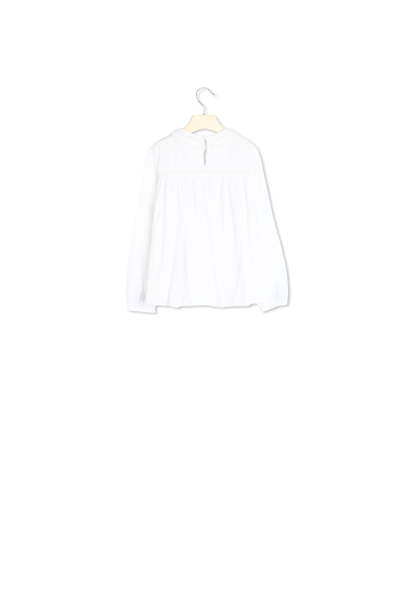 La blouse Tate pour fille se fait remarquer avec son tissu léger et sa dentelle au style poétique. Des fronces sous le buste structurent sa coupe évasée.