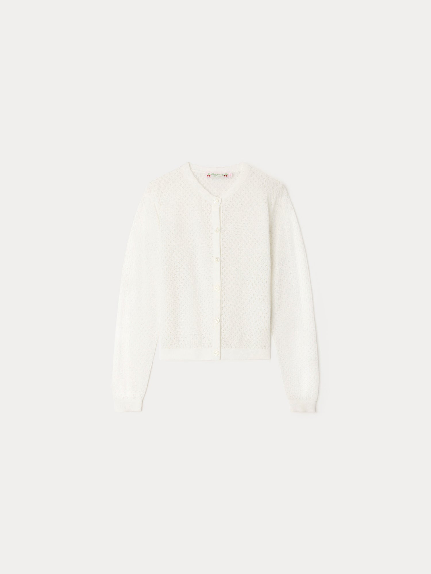 Ce cardigan pour fille Clarisse rivalise d'élégance avec son motif ajouré et son col délicatement festonné. Confectionné dans un mélange de lin et coton, il est léger et agréable à porter.