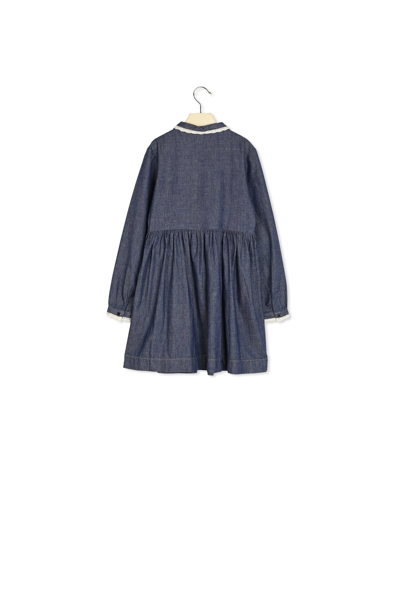 Robe en jean léger avec finitions de dentelles de coton. Collection Fille Hiver 2O18.