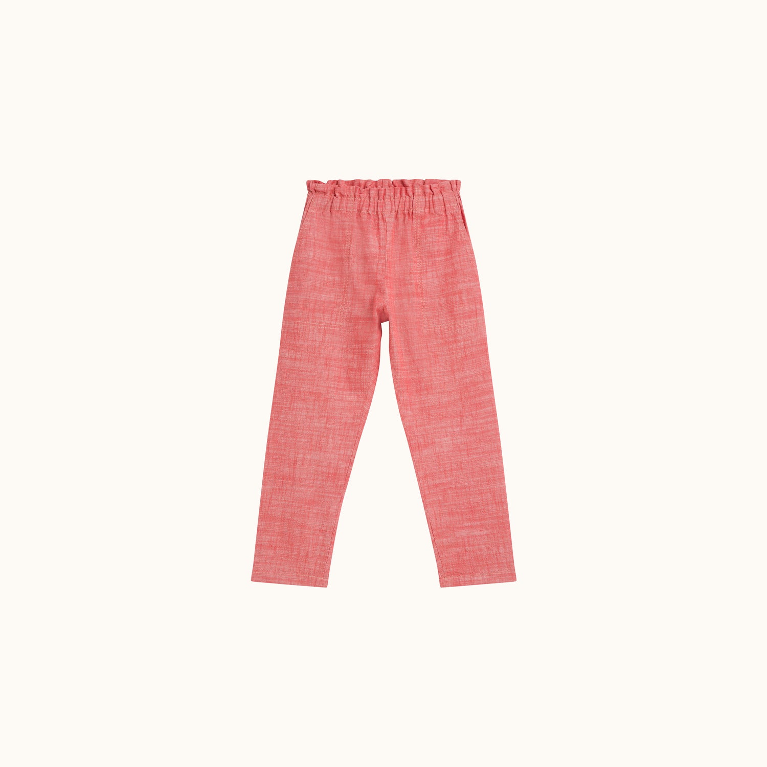 Alliance de confort et de style, le pantalon Mandy est un indispensable. Agréable à porter grâce à sa taille haute élastiquée, ce modèle du thème « Déjeuner sur l'herbe » est confectionné en coton chambray et se dote d'une broderie délicate au niveau de sa poche arrière.