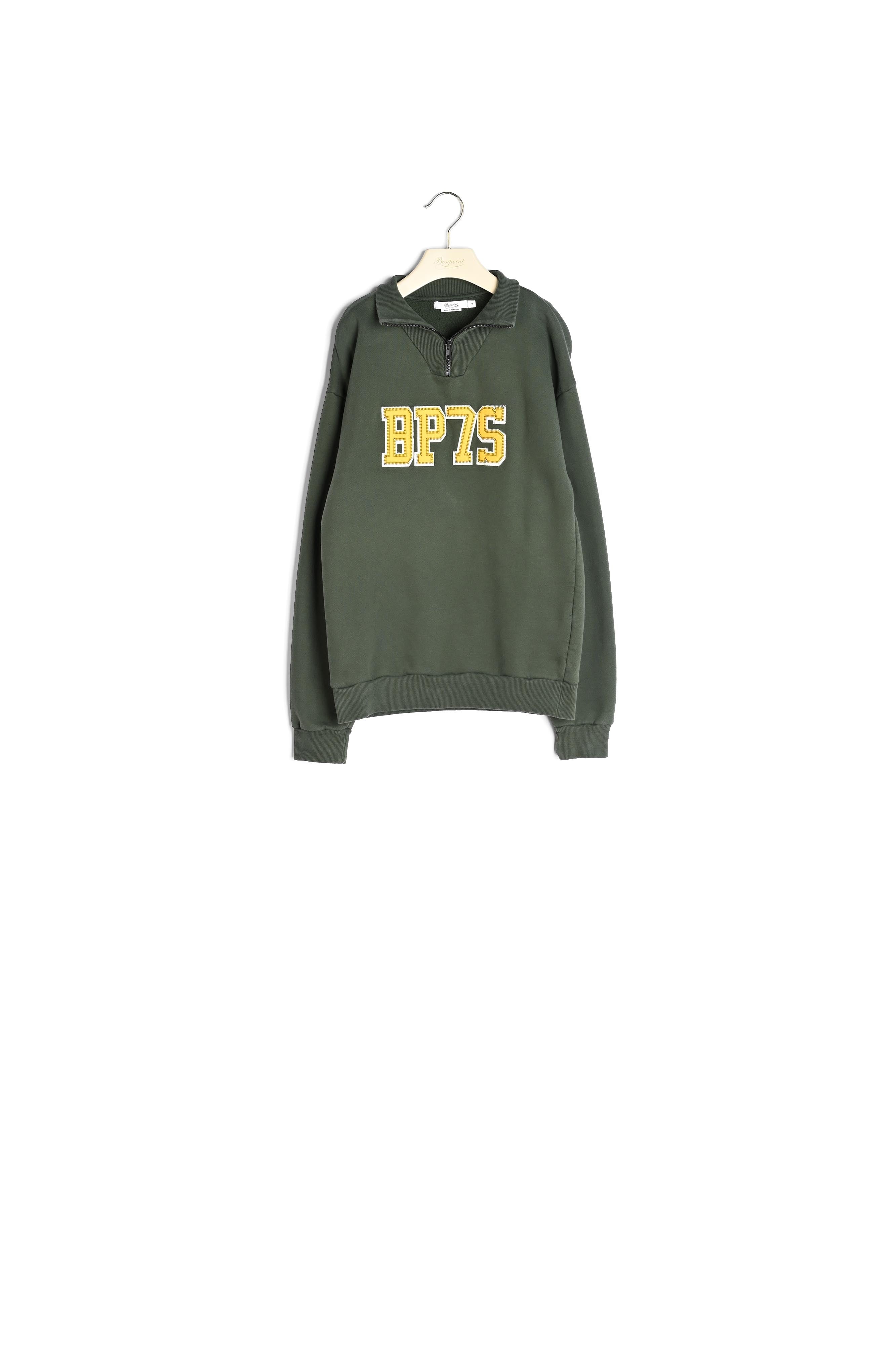 En molleton uni, ce pull Theos pour garçon adopte une coupe oversize à emmanchures descendues. Le devant est décoré des lettres en feutre du logo BP75, sous forme d'applications bordées d'un feston contrastant.