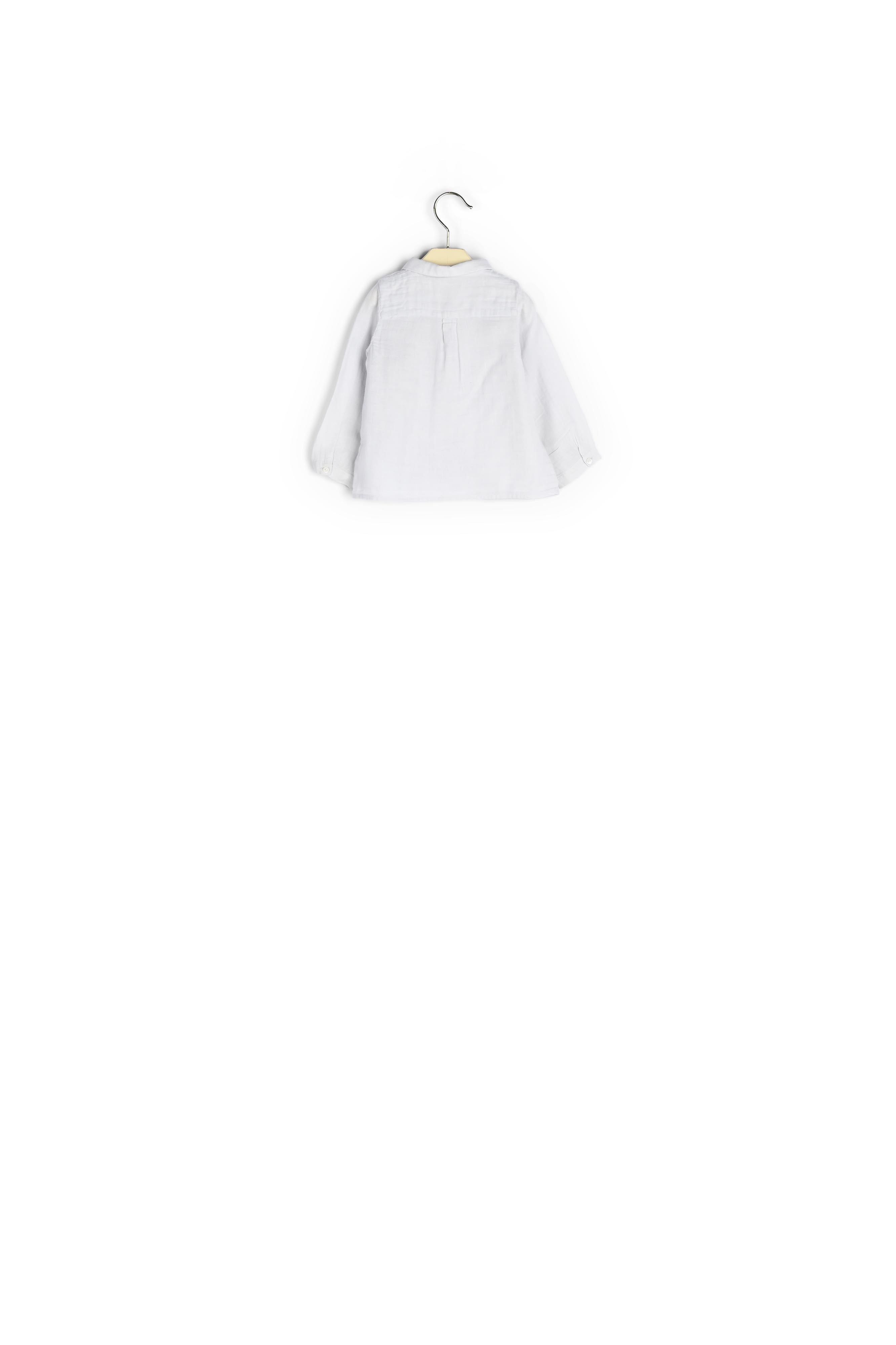 La chemise Boubou pour bébé se décline dans un adorable coton au fini gaufré. Ce modèle légèrement évasé s'agrémente d'une poche passepoilée sur la poitrine.