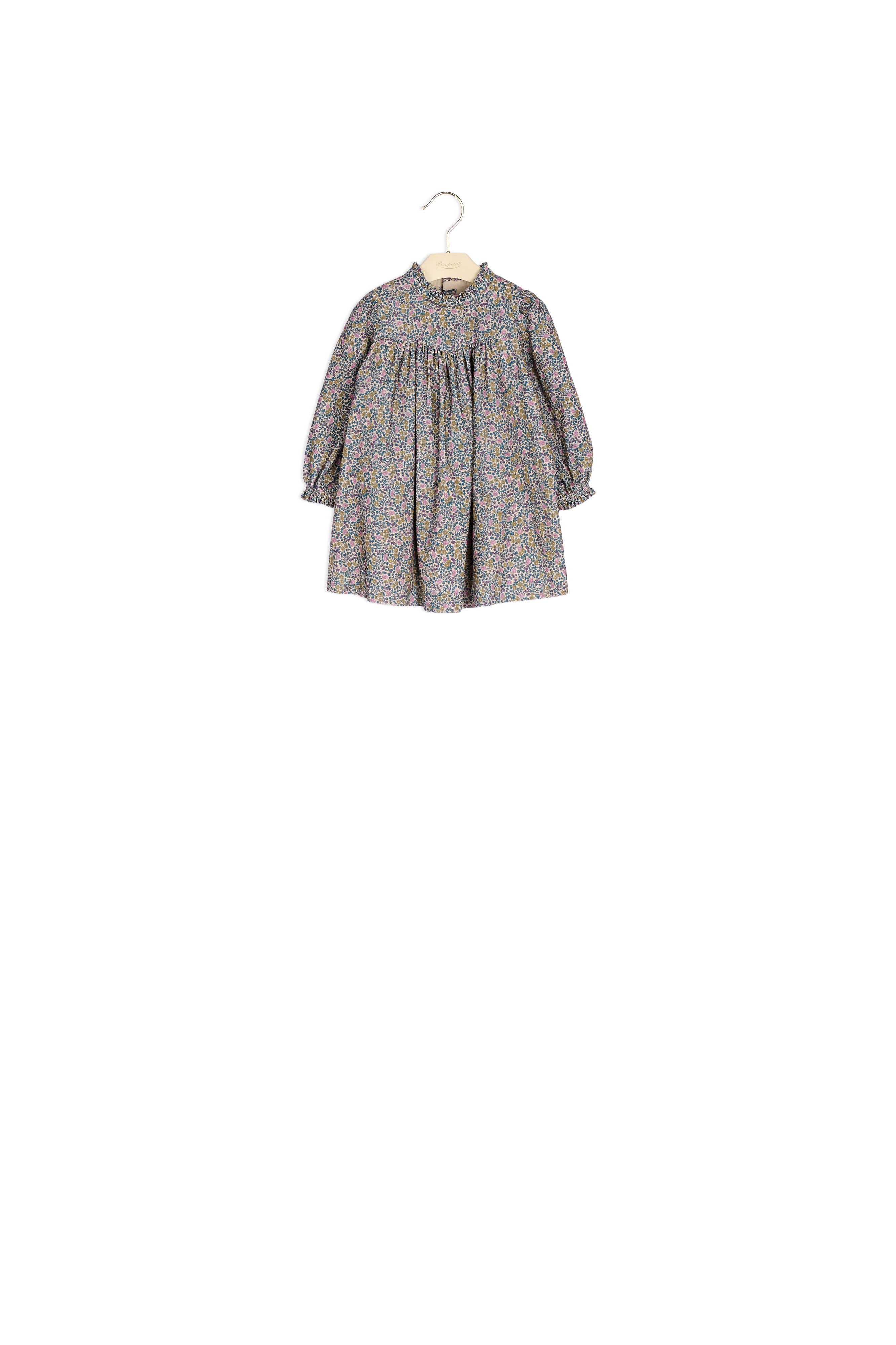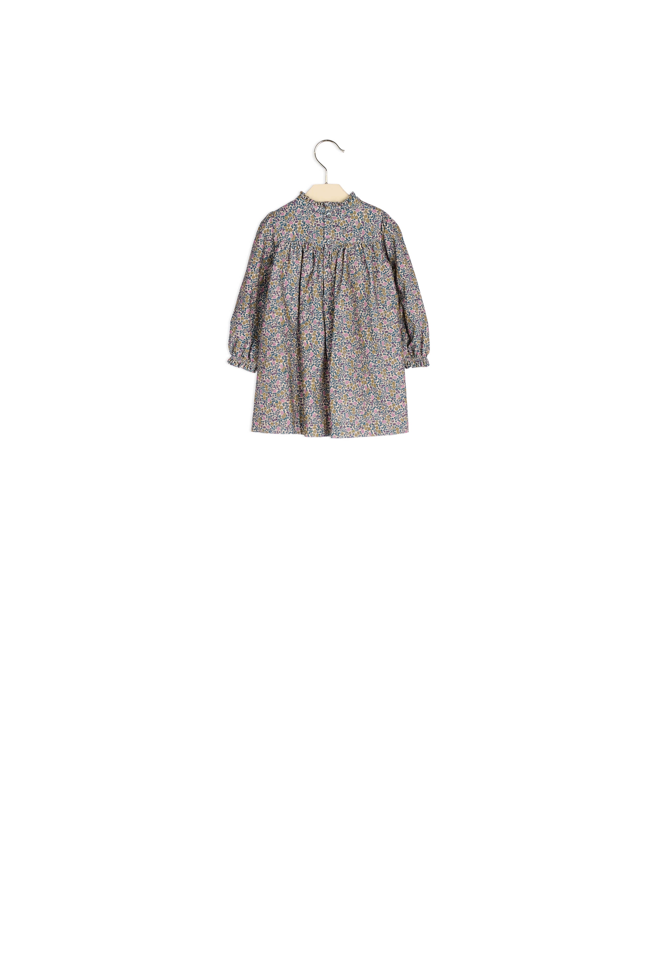 Coupée dans un tissu Liberty exclusif, cette robe Delphini bénéficie d'un joli volume apporté par des empiècements froncés à l'avant et au dos. Le col rond et les manches longues sont habillés de volants.
