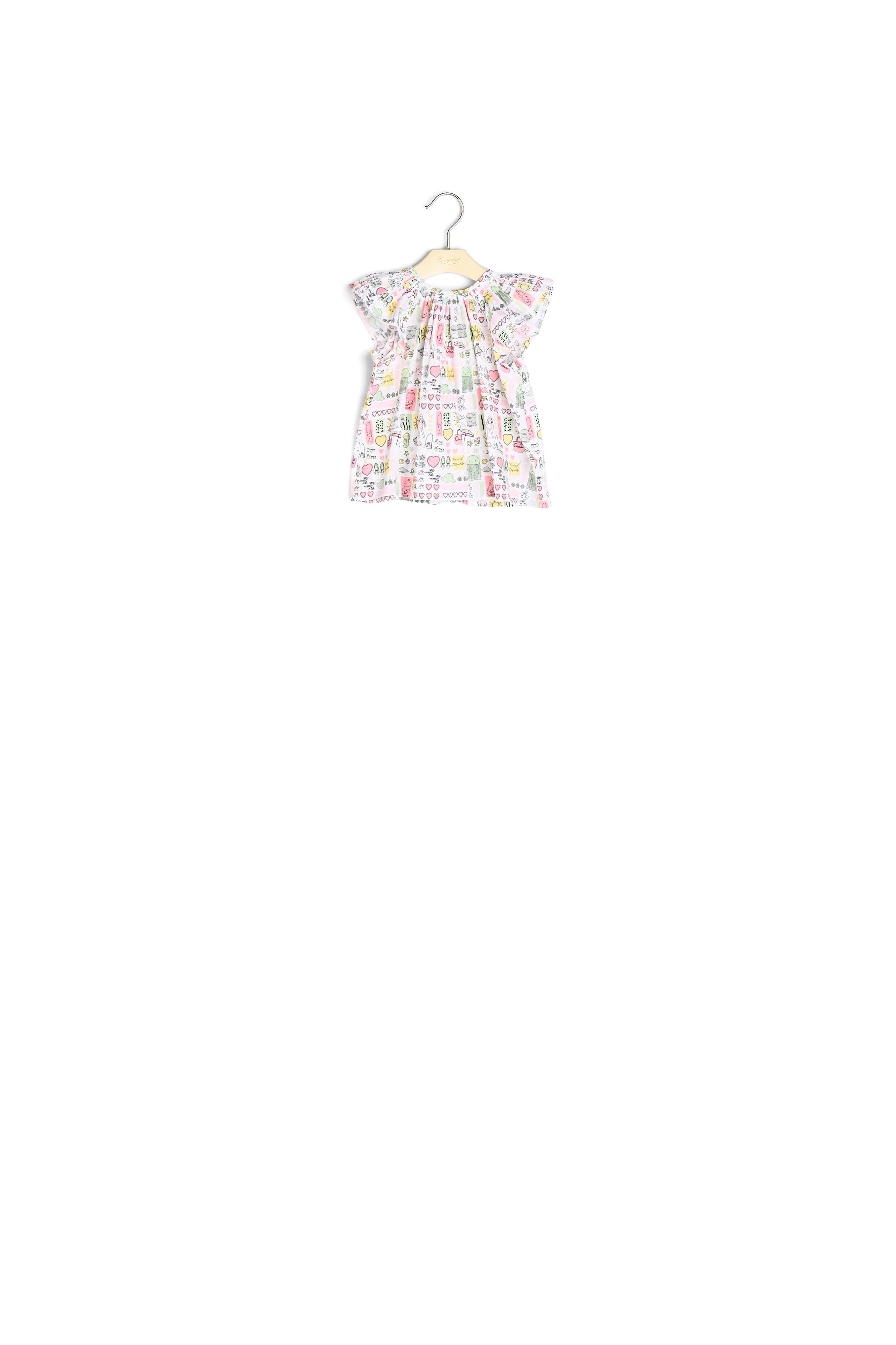 La blouse Noëlle pour bébé apporte une touche colorée à la tenue avec son imprimé original. Elle est entièrement boutonnée dans le dos pour un enfilage aisé.