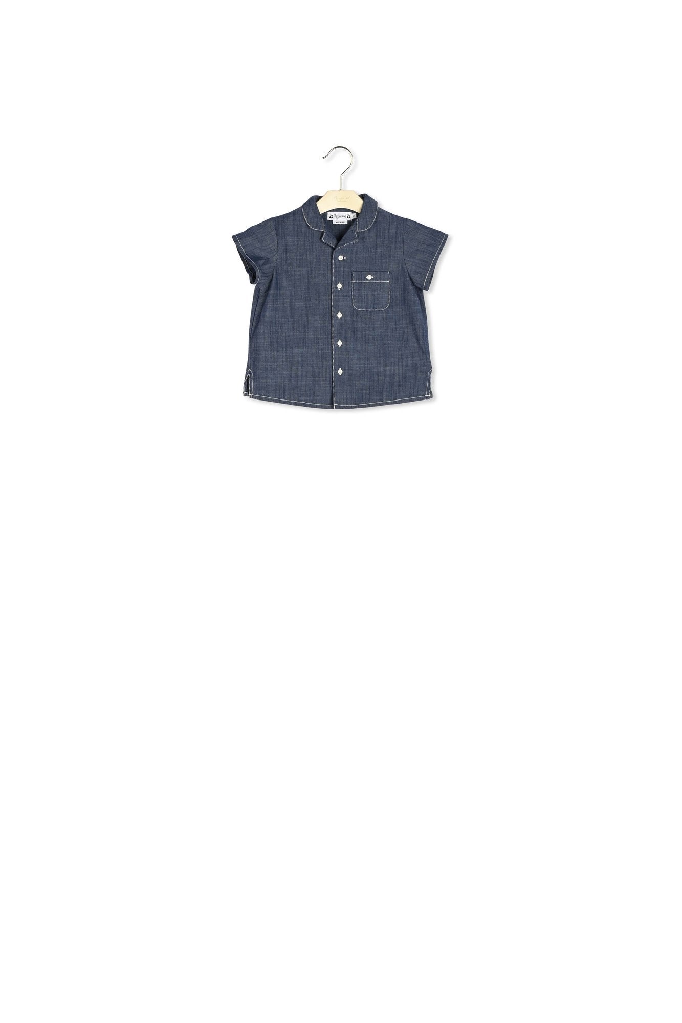 Tout en chambray, la chemise Gerald pour bébé se destine aux petits garçons. Ce modèle droit se fait remarquer par son col cranté à revers arrondi.