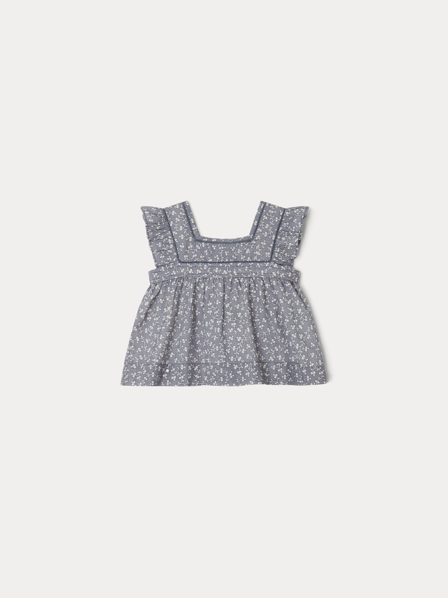 La blouse Calexandrina pour bébé adopte un style rétro avec sa coupe sans manche inspirée du tablier d'antan. Son imprimé s'approprie les cerises, emblèmes de la Maison.
