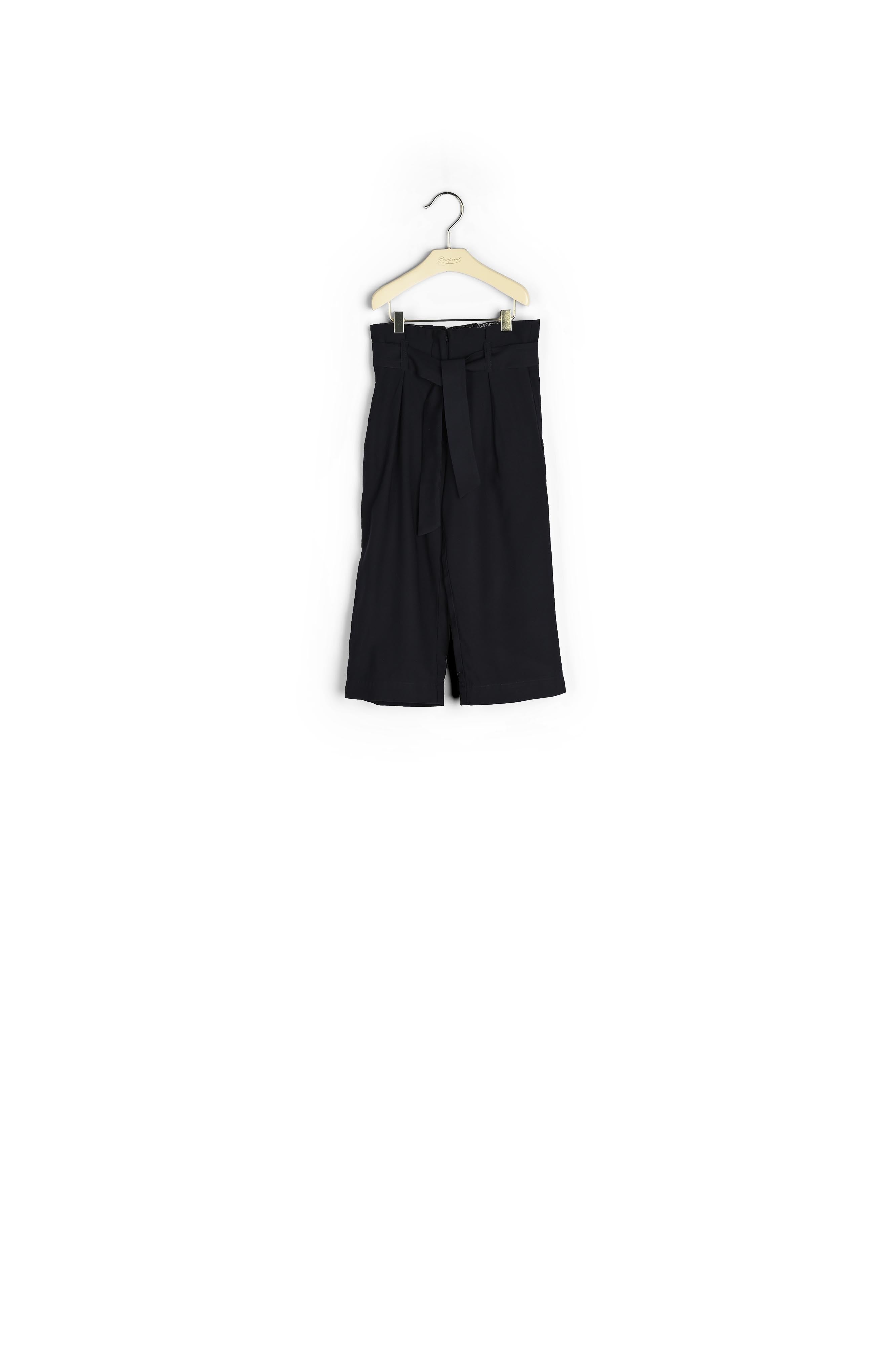 Ce pantalon Natalia marine présente une coupe large sublimée par une ceinture à nouer à la taille. Souple et fluide, sa matière twill légère est agréable à porter. Issu du thème Playing in the Rain, il se marie avec une blouse.