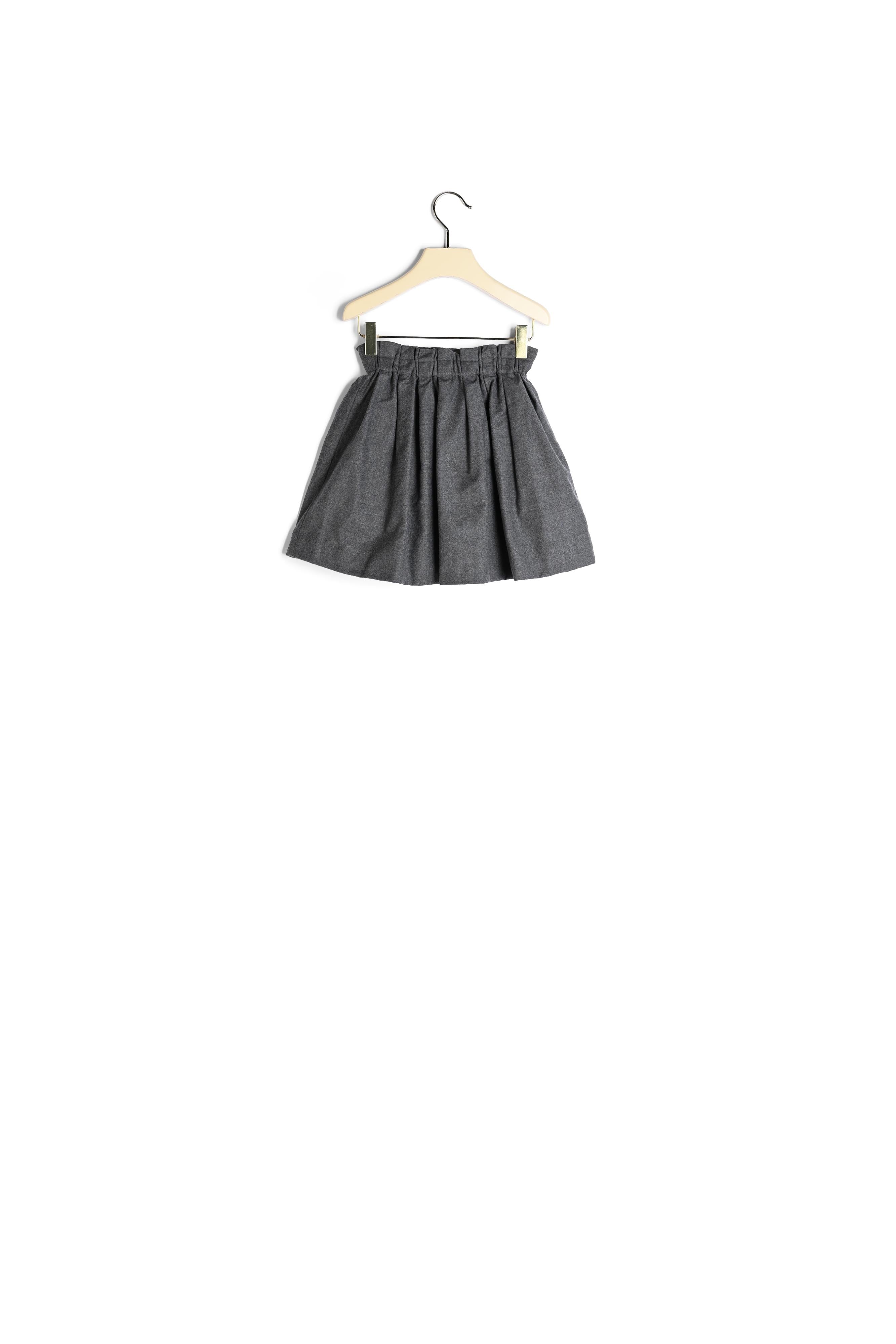 La jupe Morgan en flanelle gris chiné est idéale pour un look romantique et élégant. Ce modèle court à taille froncée élastiquée est doux et confortable. On l'associe à une blouse à col volanté pour un ensemble aérien.