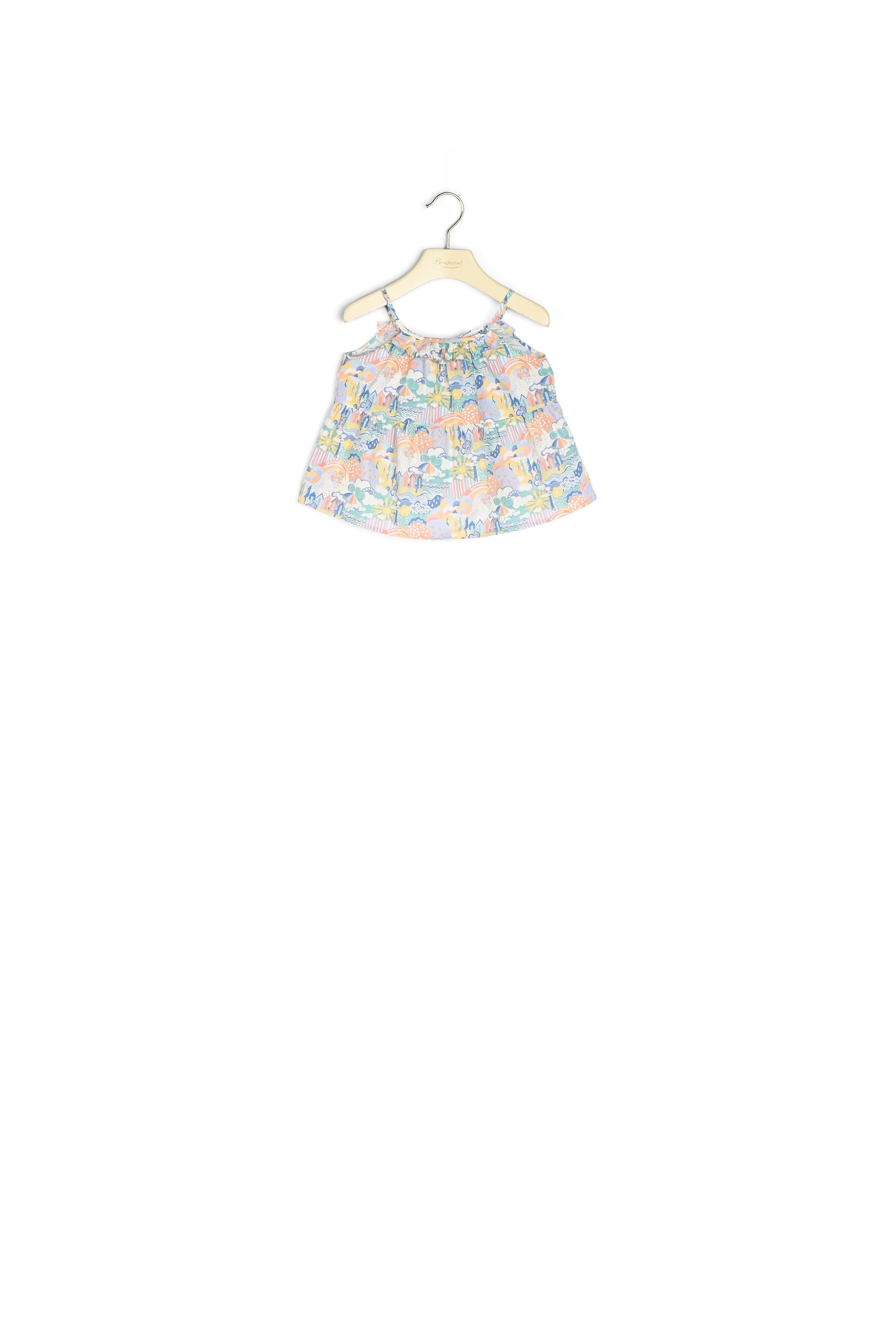 La blouse Nini pour fille se décline dans un ravissant tissu Liberty exclusif aux couleurs tendres. Ce modèle à la coupe évasée est en coton bio respectueux de la planète.