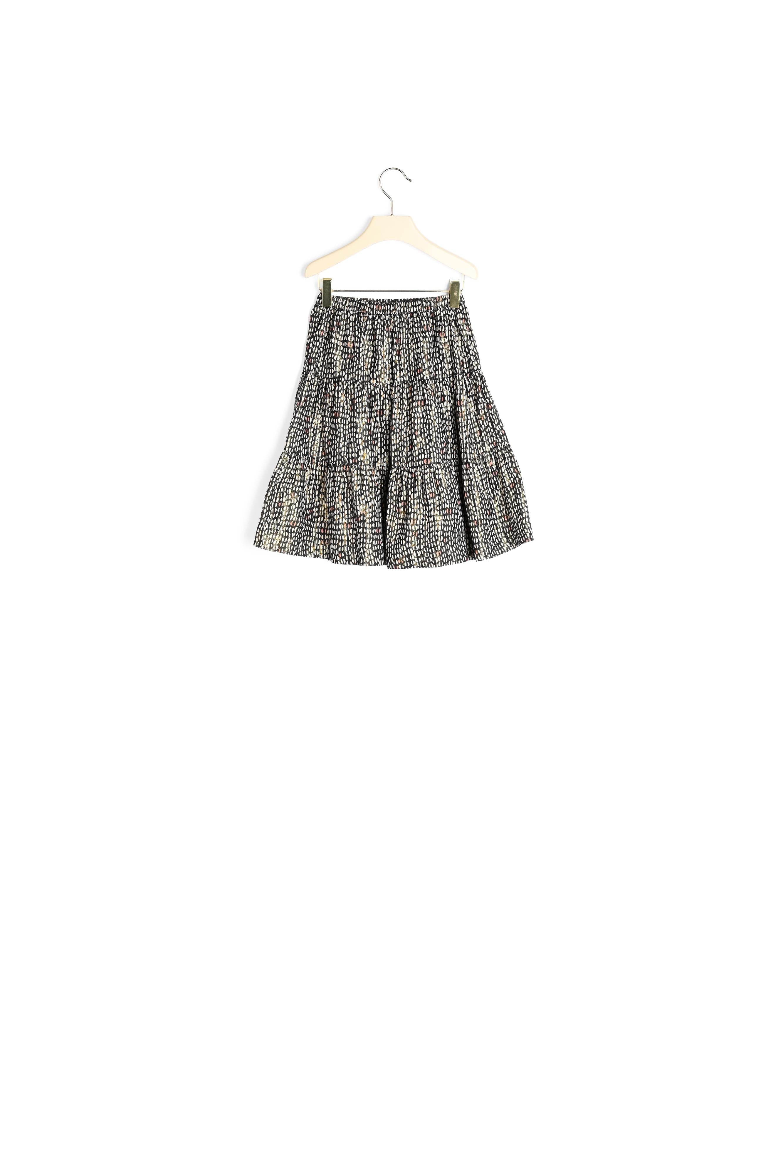 Cette jupe Lise destinée aux petites filles s'habille cette saison d'un imprimé réglisse. On apprécie particulièrement sa coupe mi-longue d'inspiration Baobab Jungle. Pour plus de style, on associe cette pièce actuelle à un T-shirt blanc et des sandales couleur bronze.