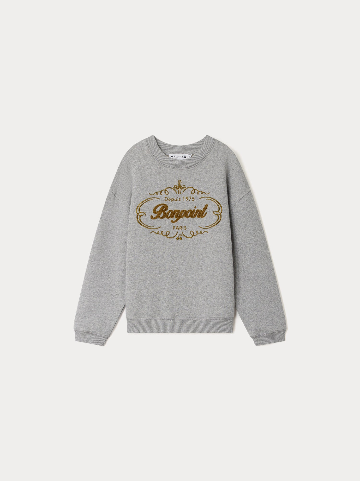 Le sweatshirt Tonino pour garçon conjugue confort et écoresponsabilité avec son molleton de coton biologique. Le blason emblématique de la Maison s'invite en broderie et maille bouclette sur le devant.