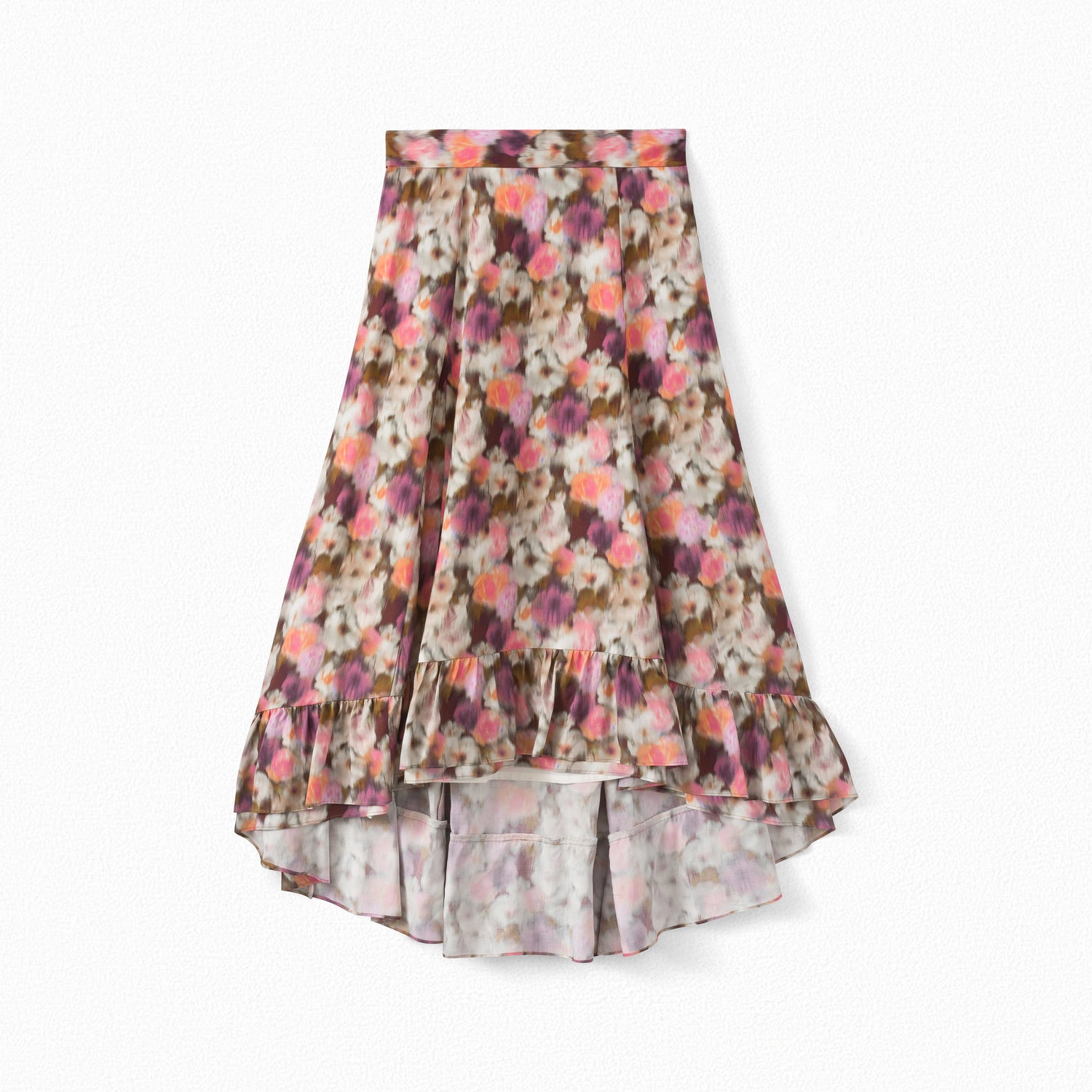 Idéale pour une occasion spéciale, la jupe mi-longue Nala pour fille est pleine de fraîcheur avec son tissu Liberty exclusif. Plus courte devant, elle se termine par un volant à la base.