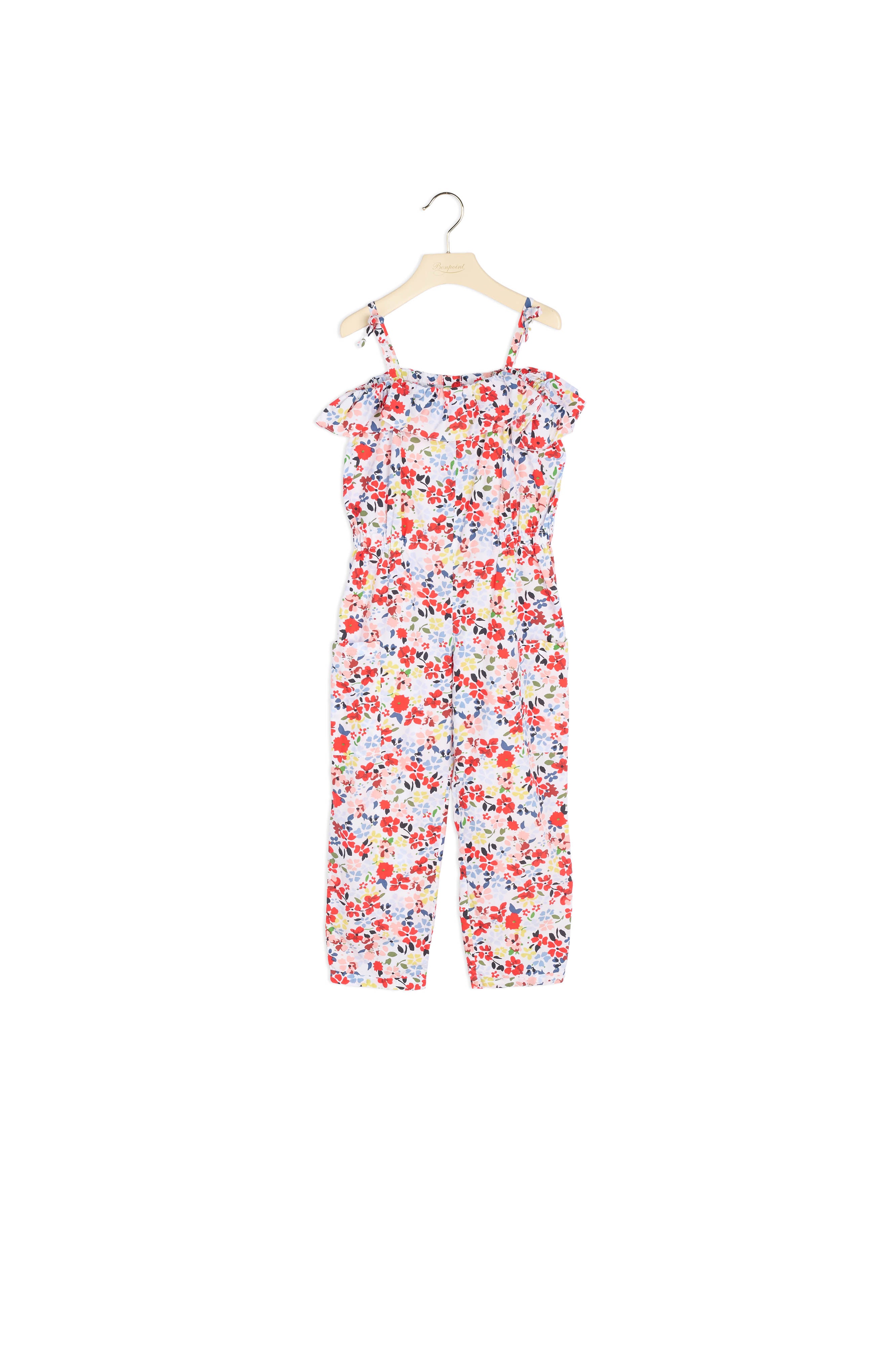 La combinaison Shannon au joyeux imprimé floral assure une agréable liberté de mouvement. Les fines bretelles à nouer de ce modèle en popeline légère se complètent d'un large volant à l'encolure.