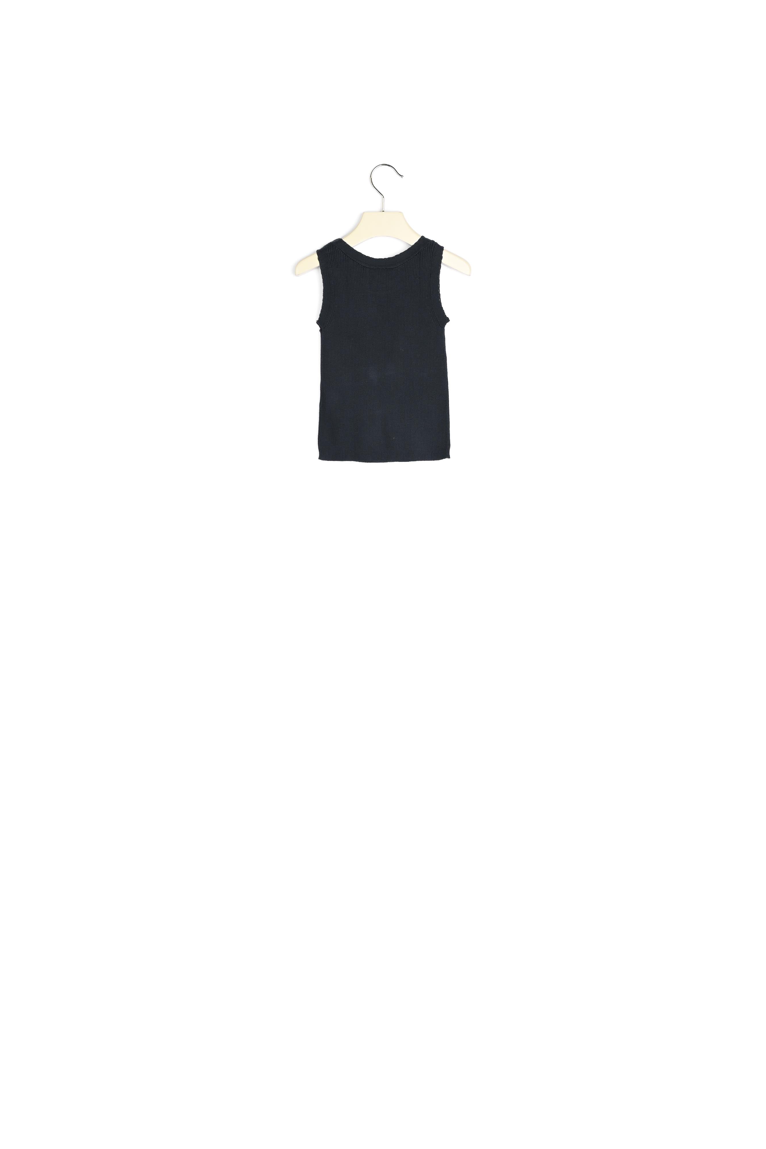 Indispensable dans le vestiaire des petites filles, ce débardeur en maille côtelée fine sera l’allié de toutes les tenues d’été. Confectionné en coton, il possède une cerise dorée brodée sur le bas.