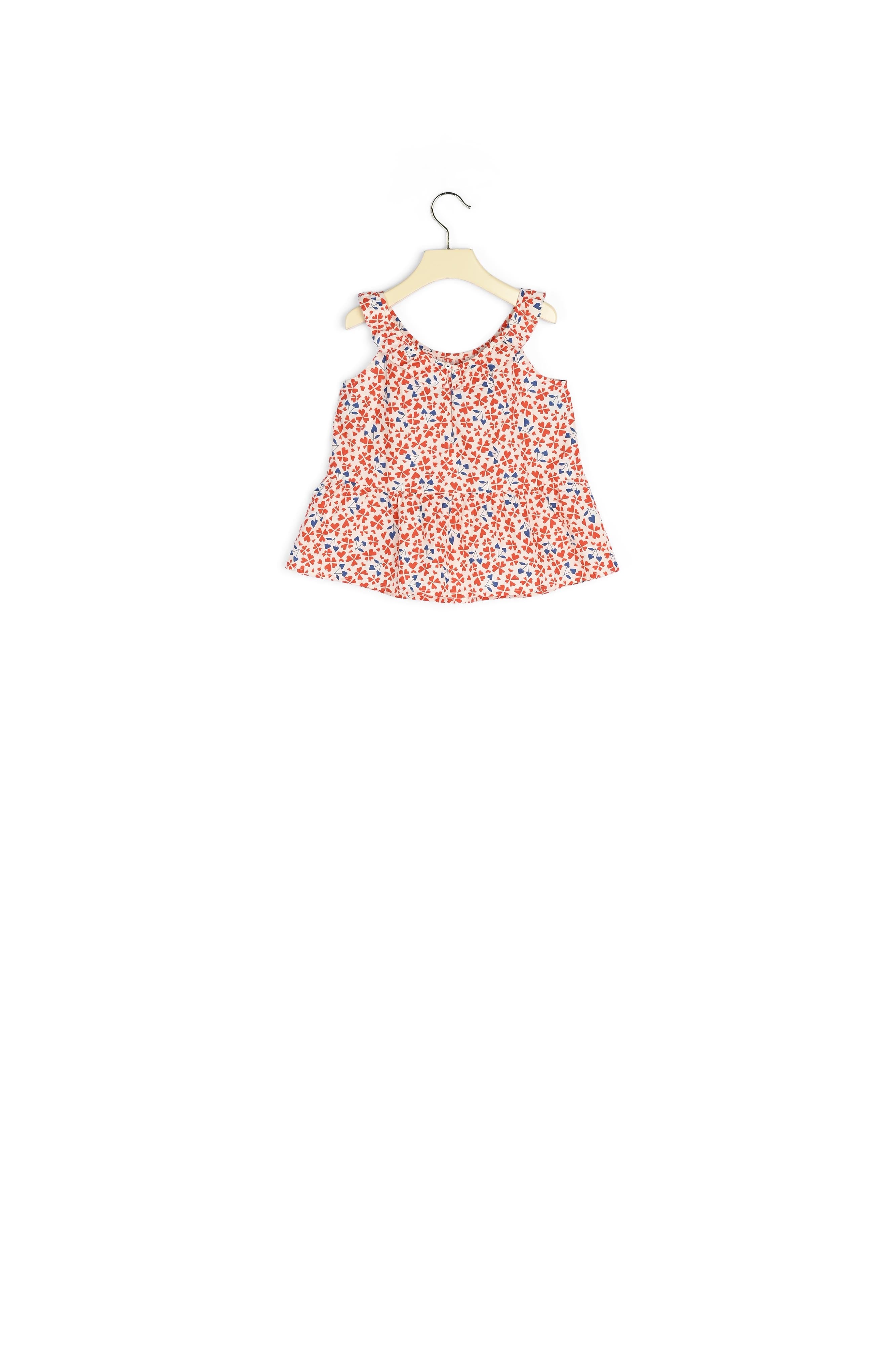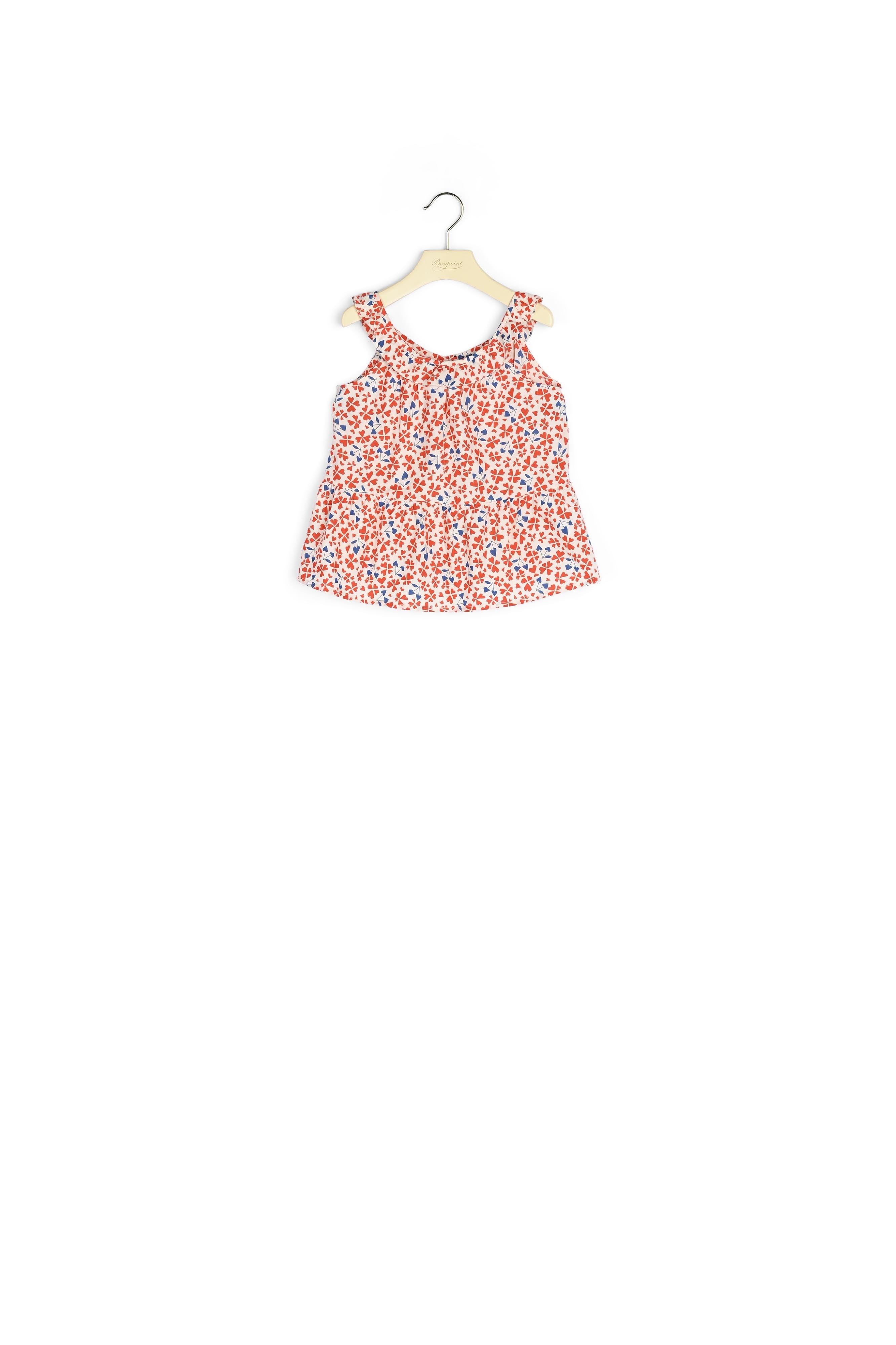 On ne résiste pas aux motifs de cette blouse Ninili aux accents rétro. Issu de la collection « En toute liberté », ce modèle sans manches est mis en valeur par un décolleté rond volanté souligné d'un petit bouton, une coupe ample et un imprimé pop et coloré.