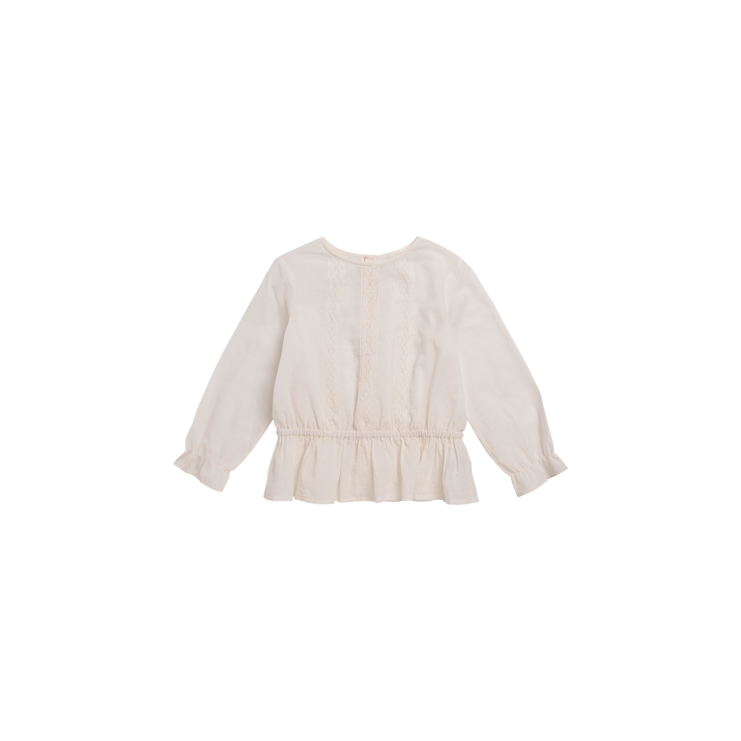 Cette blouse Lalia de couleur blanche s'inspire du style anglais victorien pour garantir à votre petite fille une allure des plus élégantes. Les finitions élastiquées soulignent la taille et les poignets tandis que les liserés brodés sur le devant apportent un supplément de charme au modèle.