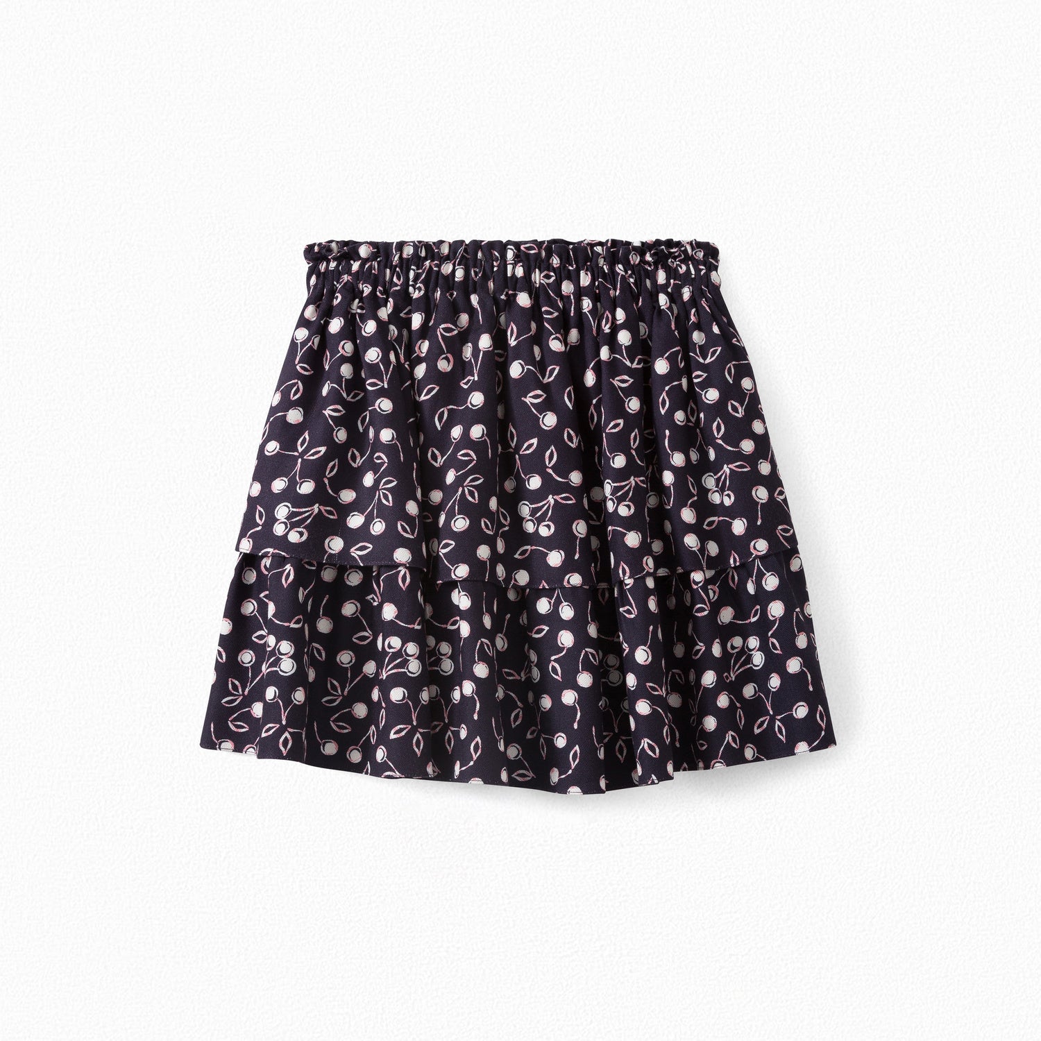La jupe pour fille Pavlov est composée de deux volants qui lui confèrent un charme intemporel. En twill imprimé des célèbres cerises Bonpoint, elle est munie d'une ceinture froncée, aussi élégante que confortable.
