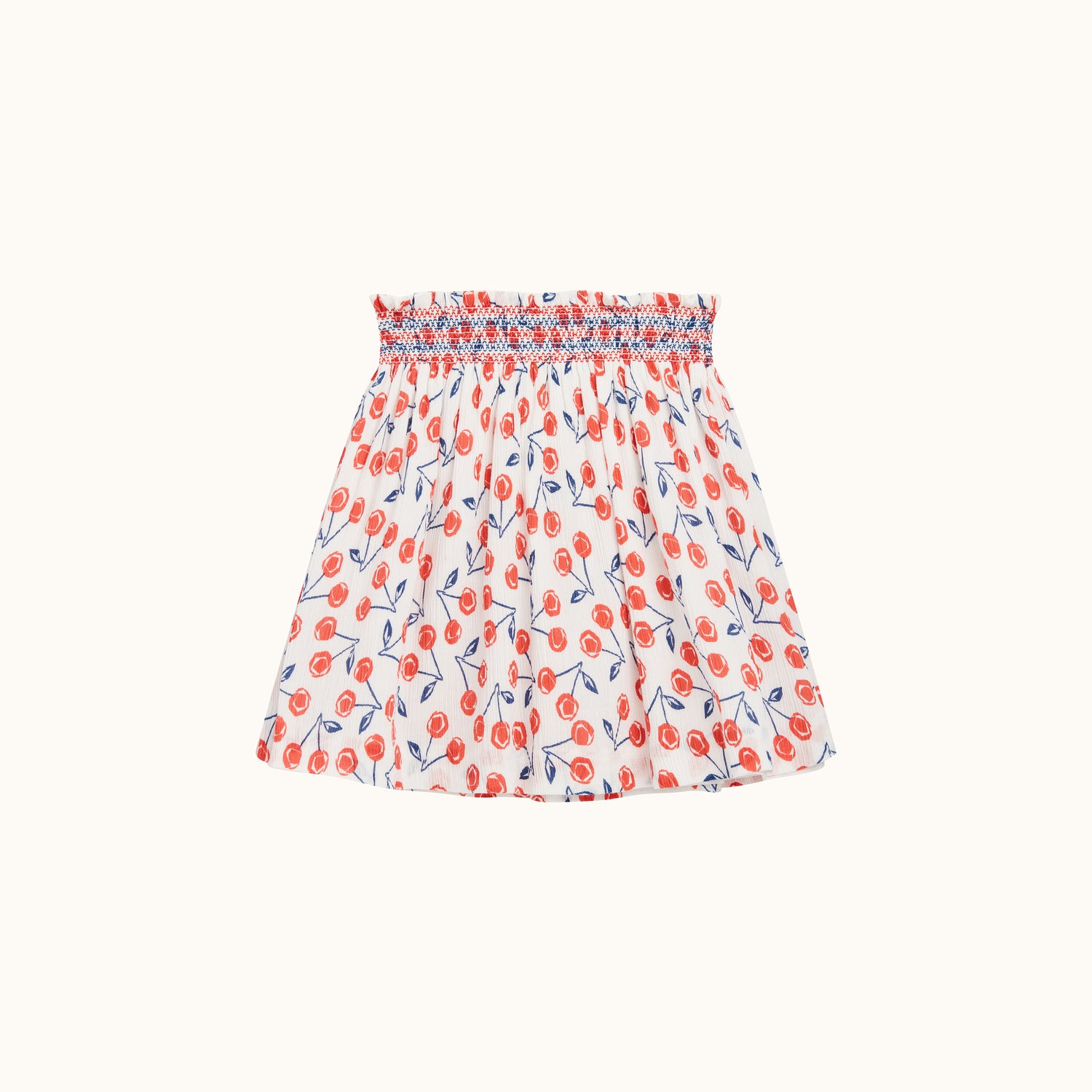 Les cerises emblématiques de Bonpoint viennent éclairer la jupe Nouméa. On aime le côté aérien de cette jupe patineuse à taille élastiquée. Elle sera idéalement mise en valeur portée avec un chemisier blanc à l'esprit bohème.