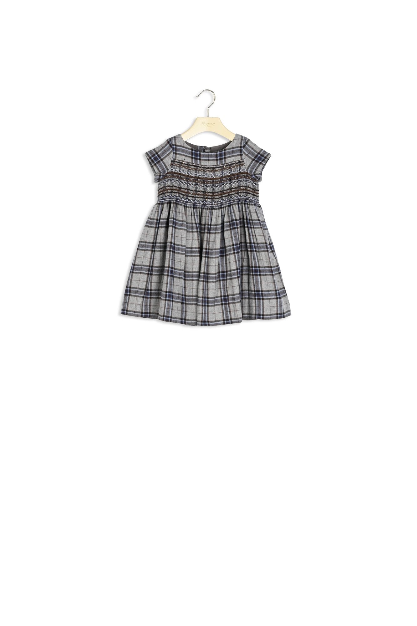 Un classique intemporel Bonpoint éternellement revisité, robe en coton laine, smockée et brodée à la main. Collection Fille Hiver 2O18.