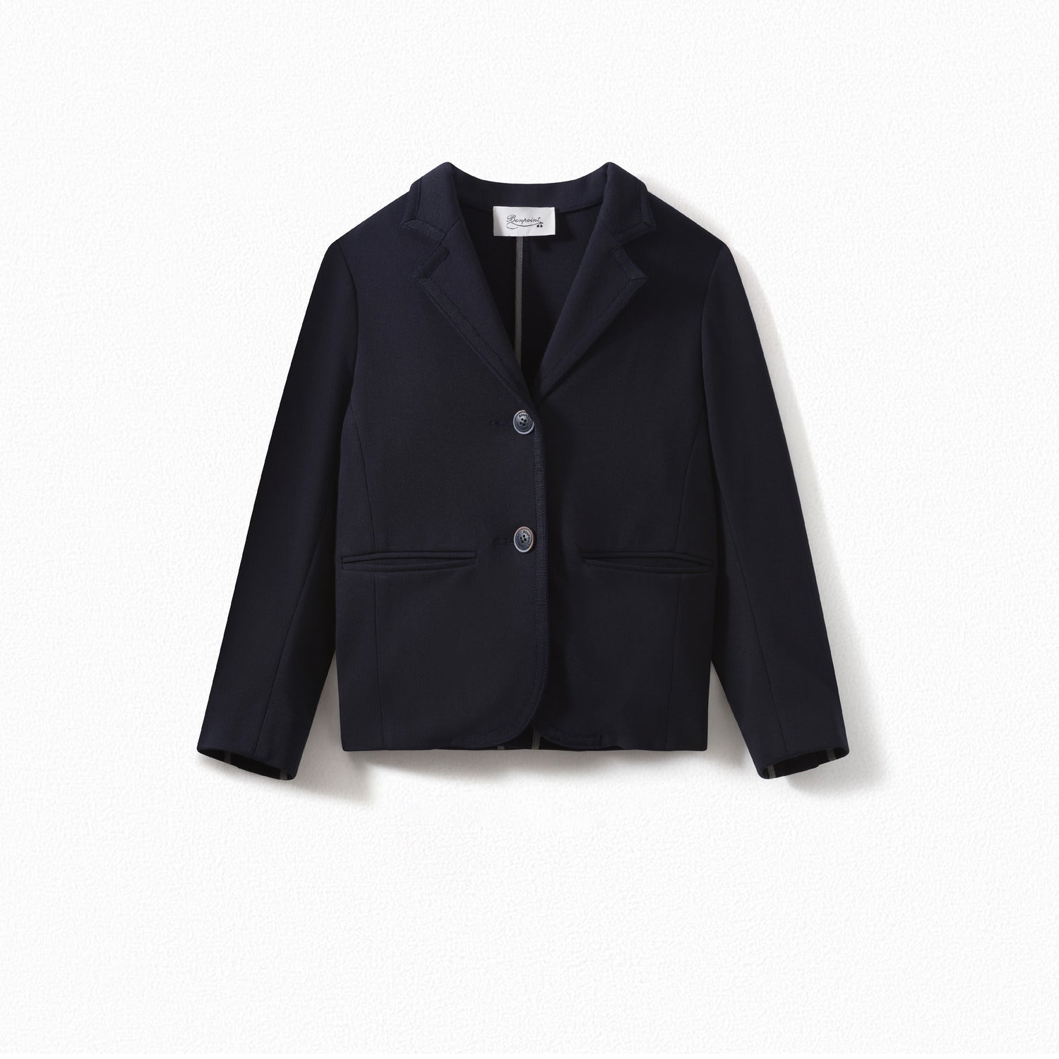 Jersey milano. Fermeture deux boutons devant. Poches passepoilées. Poignets boutonnés.