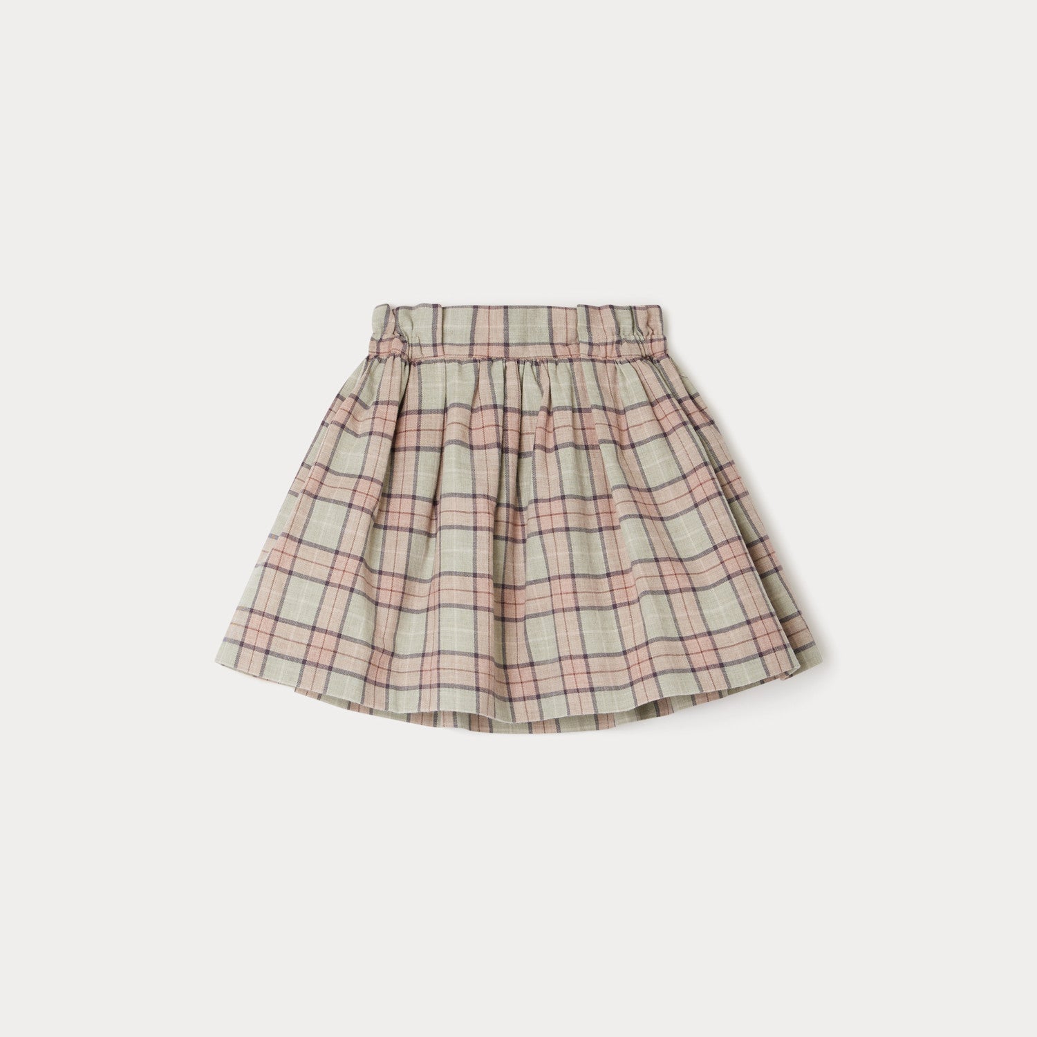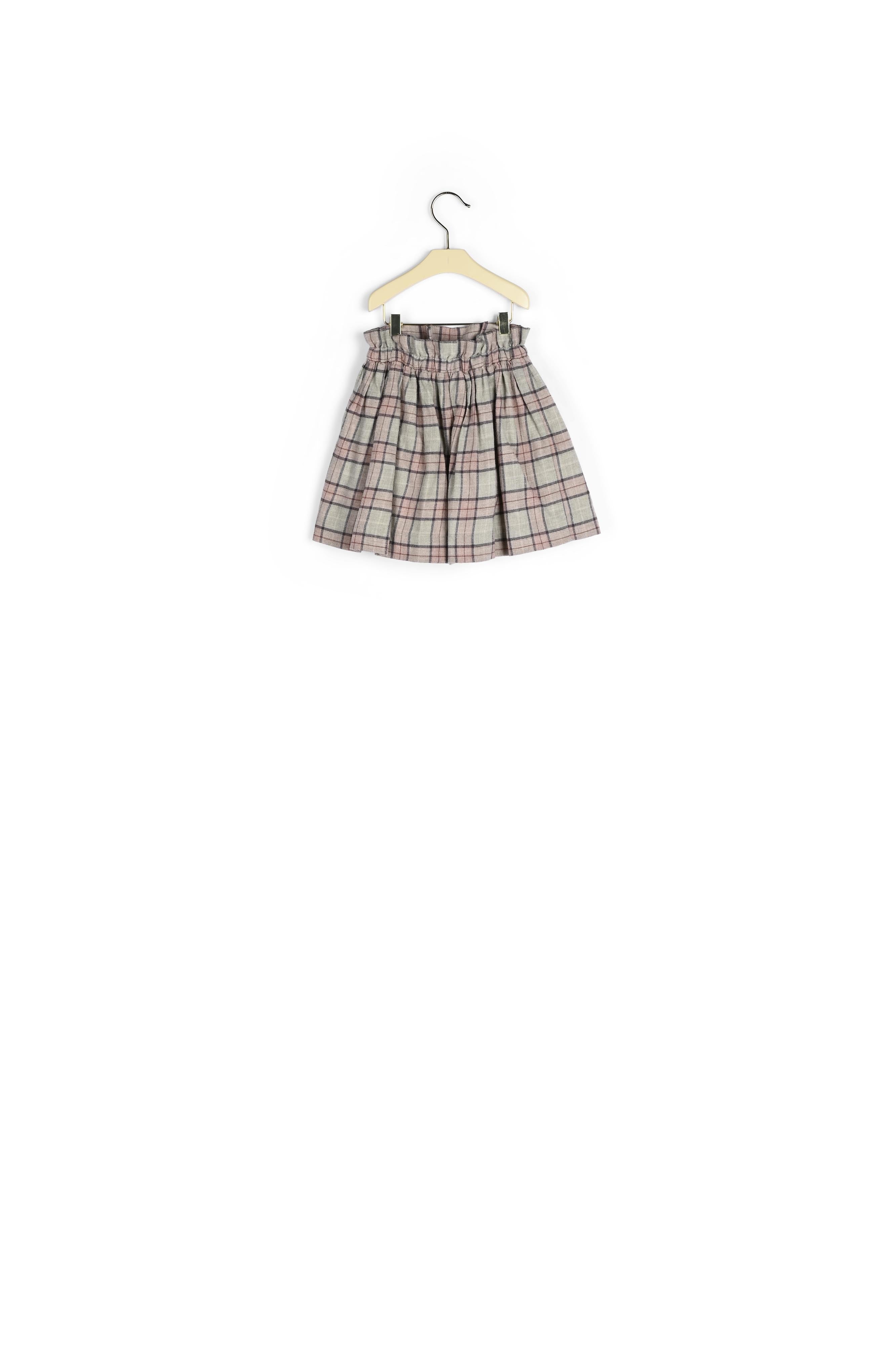 En twill émerisé, cette jupe habillée Amicie se pare d'un charmant imprimé écossais dans les tons pastel. La taille haute est élastiquée pour plus de confort.