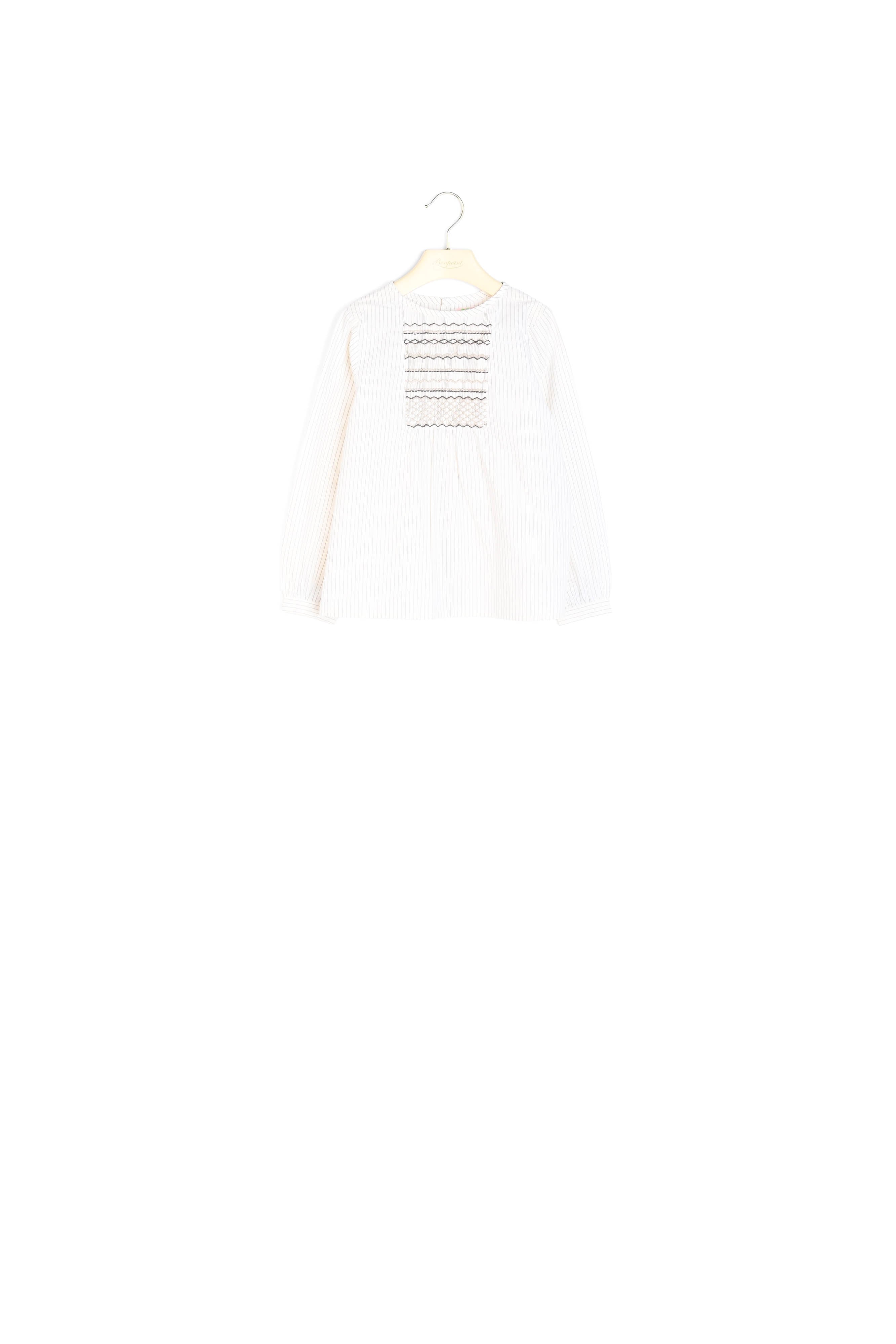 Blouse en popeline rayée, smockée, boutonnage dos. Collection Fille Hiver 2O18.