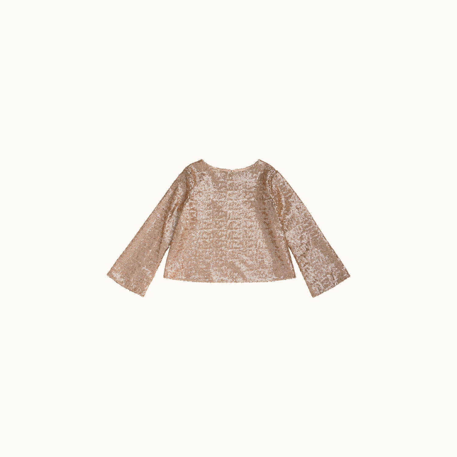 Pétillant et élégant, le haut Maria est idéal pour compléter une tenue de fête. Entièrement garni de sequins, il dispose de manches longues évasées et d'une petite ouverture en goutte d'eau à l'arrière.