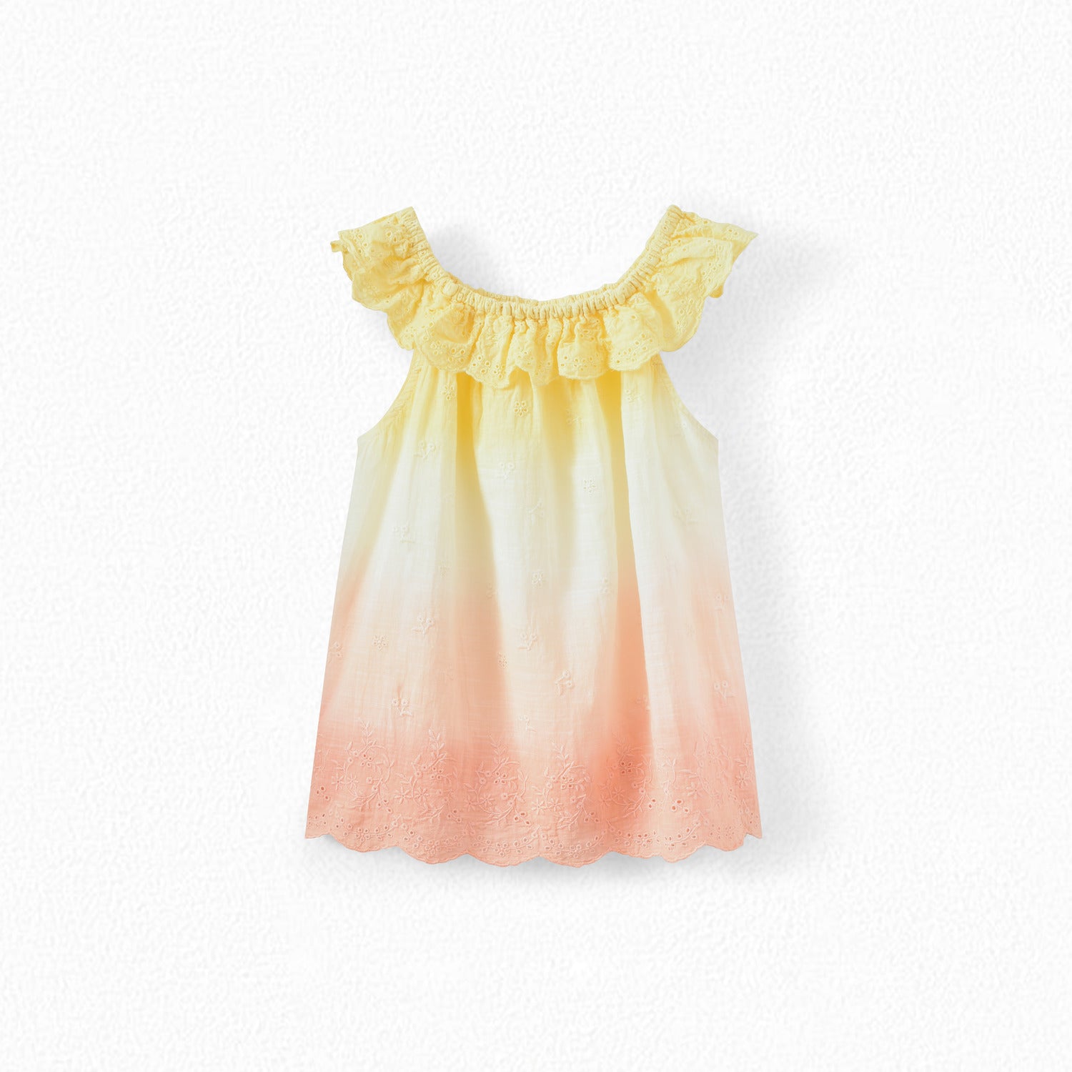 En coton. Sans manches. Base festonnée.
